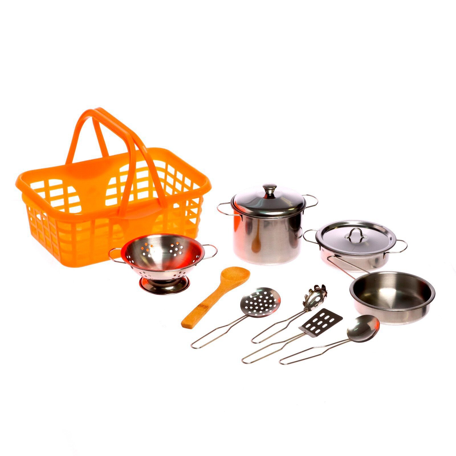 Купить Набор детской металлической посудки «Супер Шеф», с фартуком и колпаком, в корзинке, микс