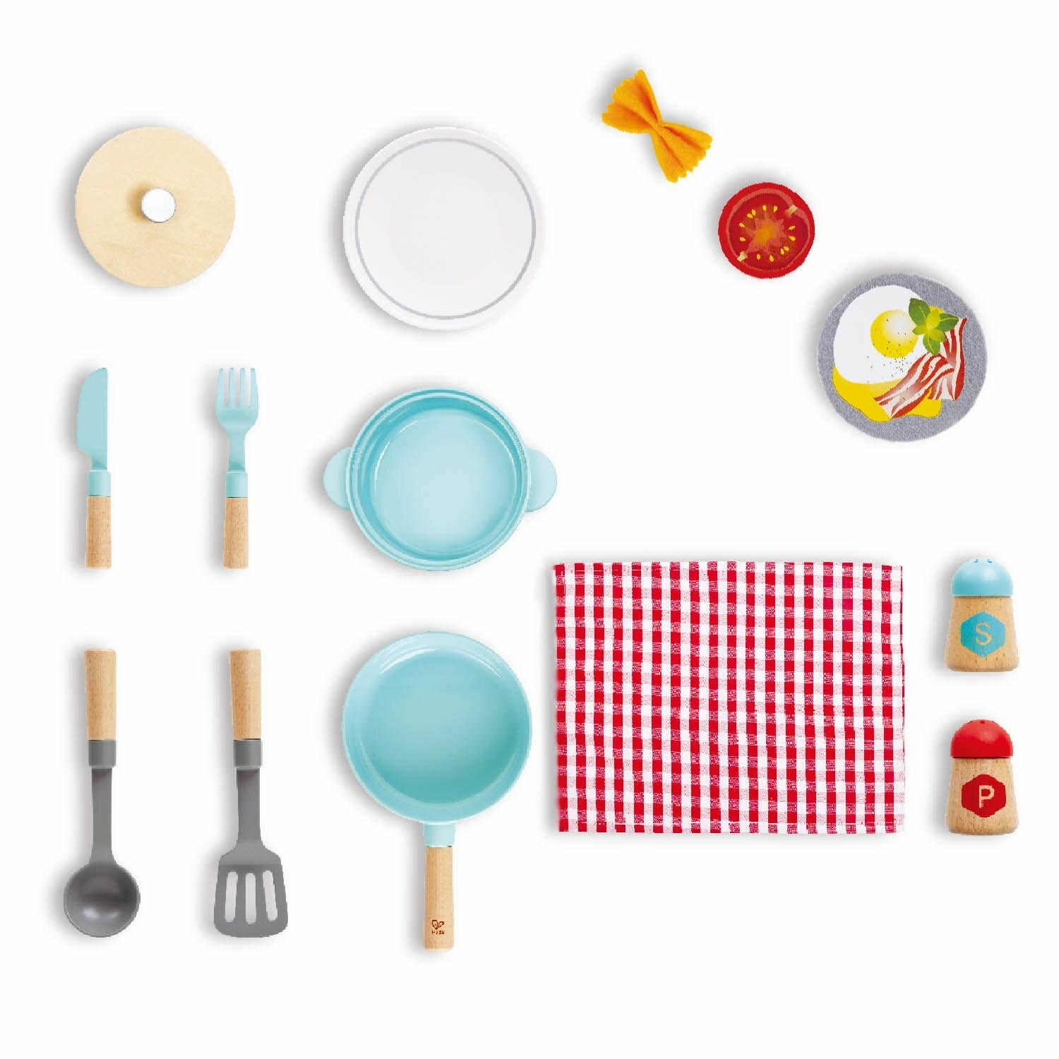 | Комплектация | кастрюля и сковородка с крышкой, лопатка, половник, 2 вилки и 2 ножа, 2 мини-скатерти, солонка и перечница, паста и ломтик помидора |