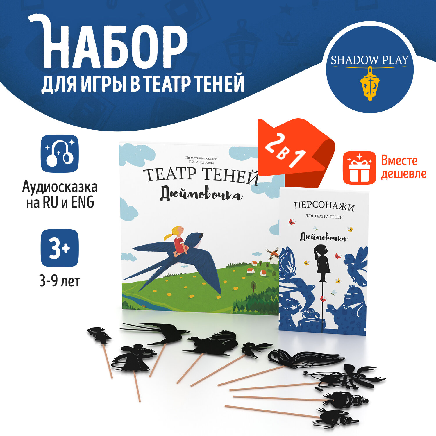 Комбо Театр теней SHADOW PLAY "Дюймовочка" (книга + набор персонажей), развивающие книги для детей, сказки для малышей интересное: