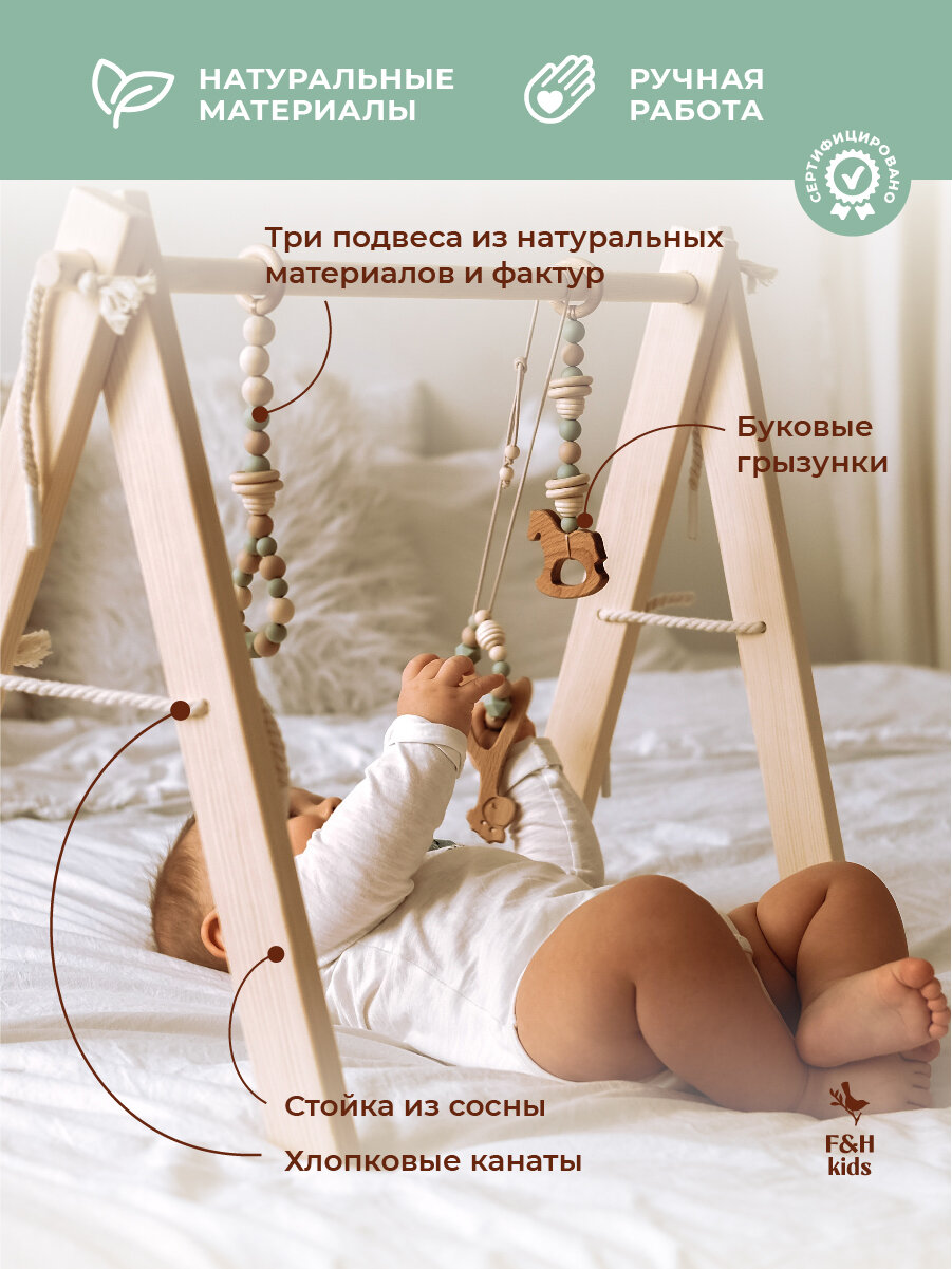 Купить Деревянный развивающий тренажер с игрушками - подарочный мобиль Зеленый