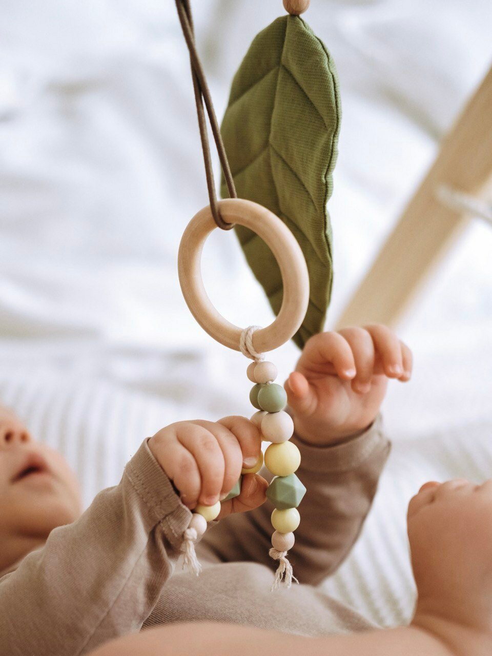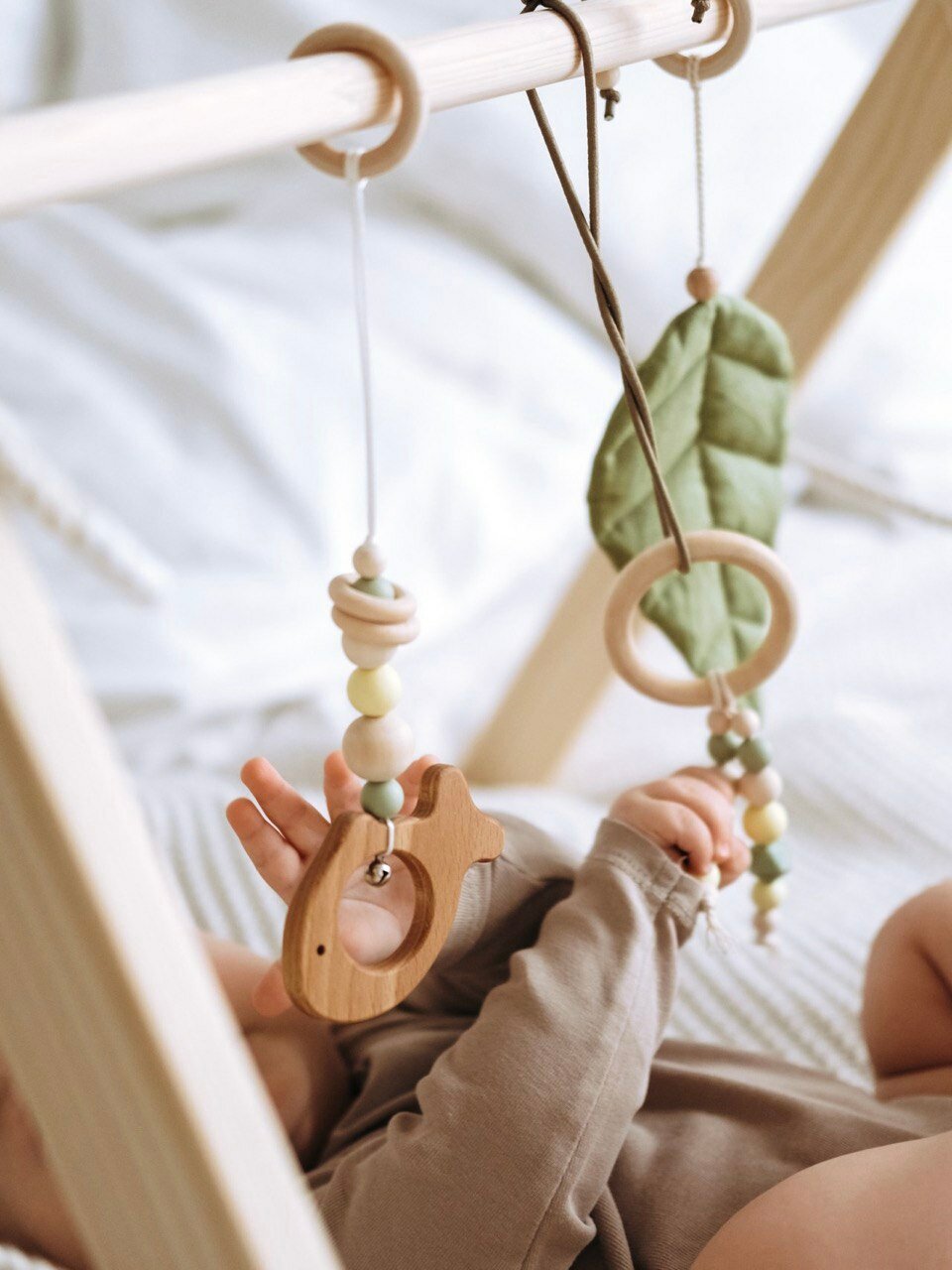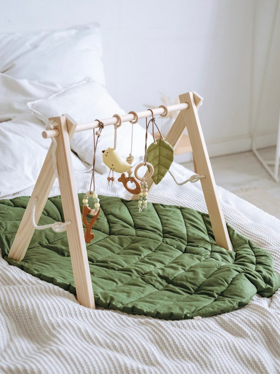 Деревянный развивающий тренажер с игрушками - подарочный мобиль Зеленый