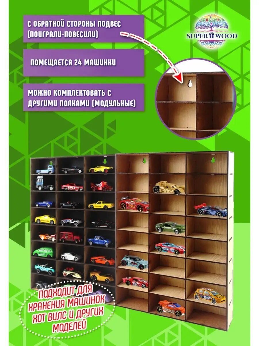 Полка - парковка, гараж для машинок вертикальная белая на 24 машинки интересное: