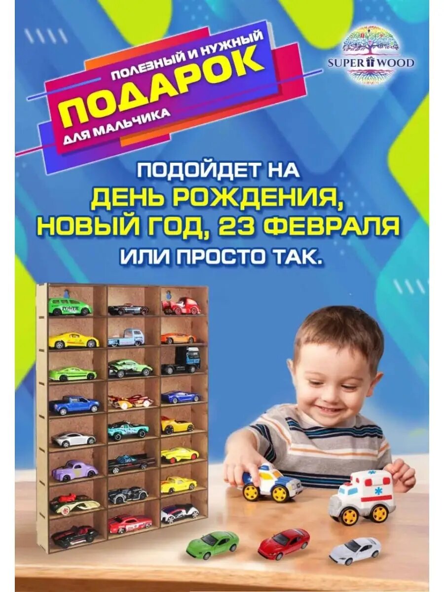 Полка - парковка, гараж для машинок вертикальная светлая на 24 машинки интересное: