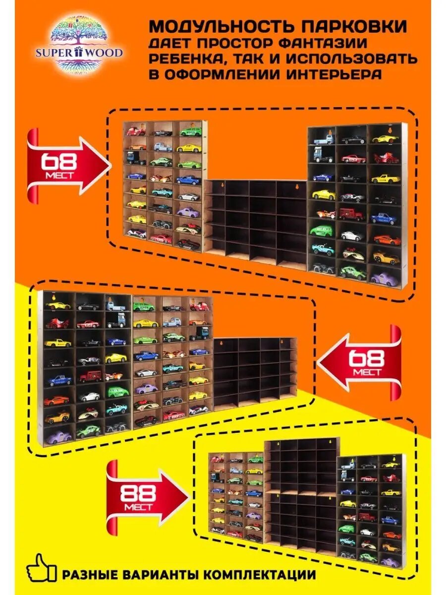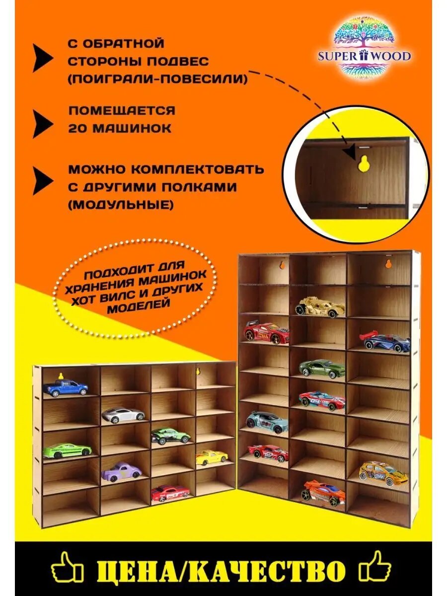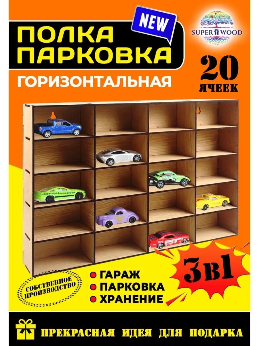 Полка - парковка, гараж для машинок горизонтальная белая на 20 машинок интересное: