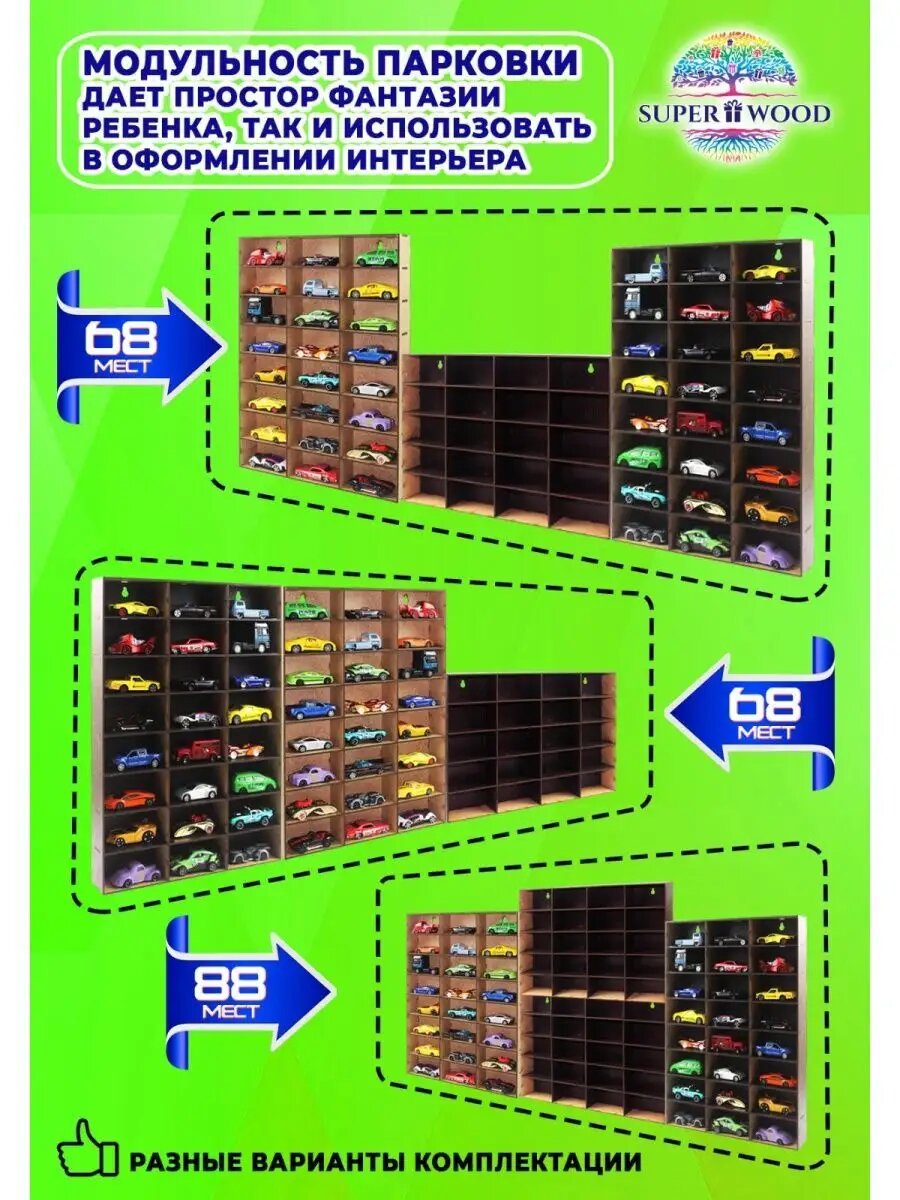 Полка - парковка, гараж для машинок горизонтальная темная на 20 машинок интересное: