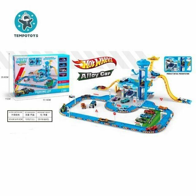 Купить Многоуровневая детская автомобильная парковка трек с горками и 4 металическими машинками