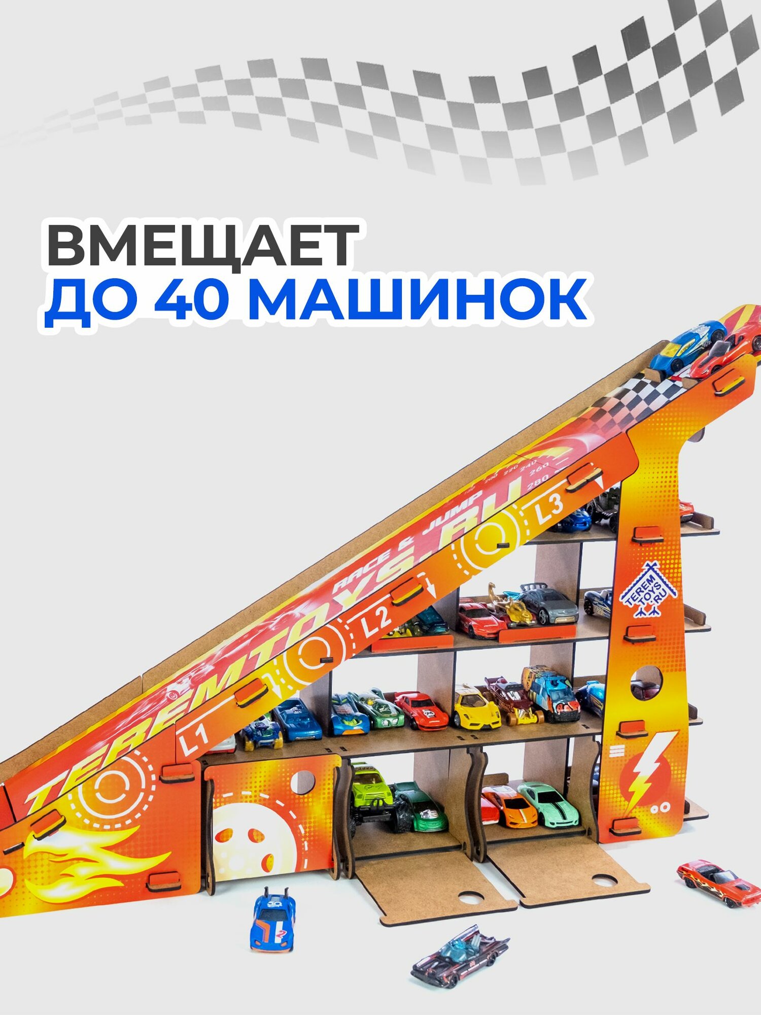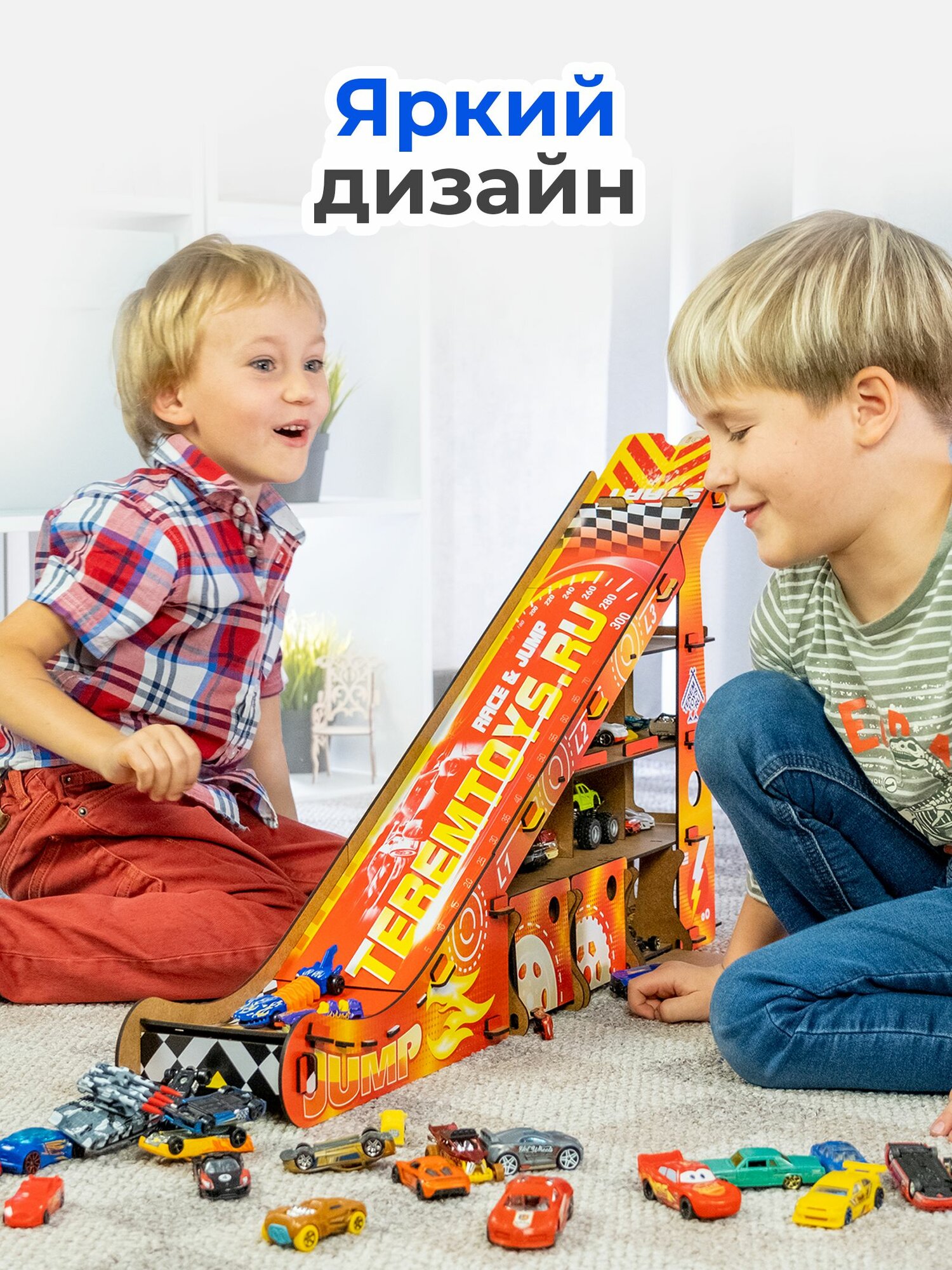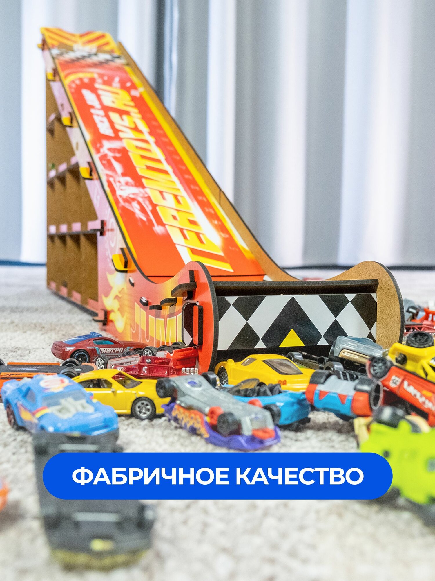 Парковка для машинок с трамплином и спусковым механизом Jump Color, гараж, паркинг, полка для машинок интересное: