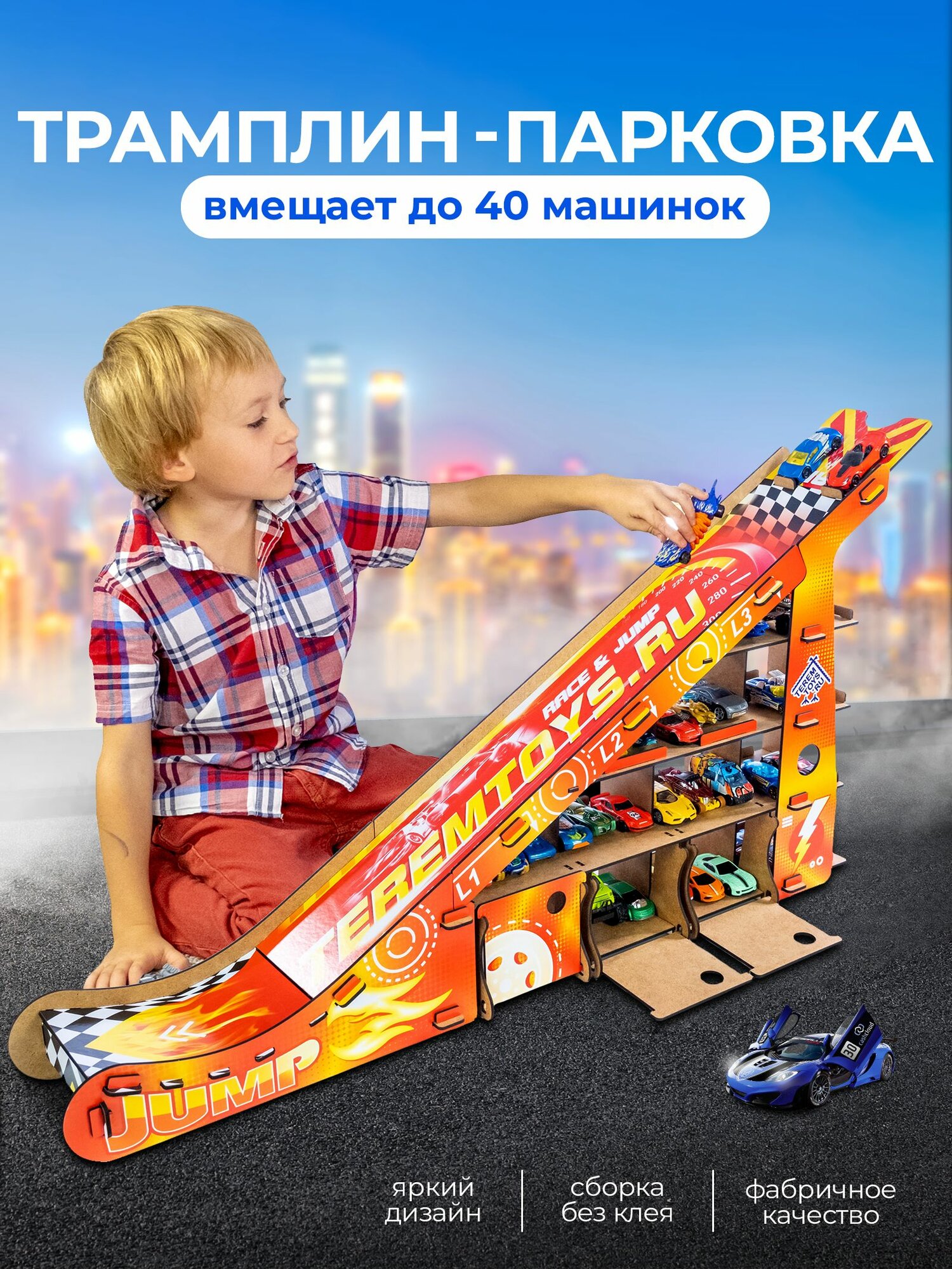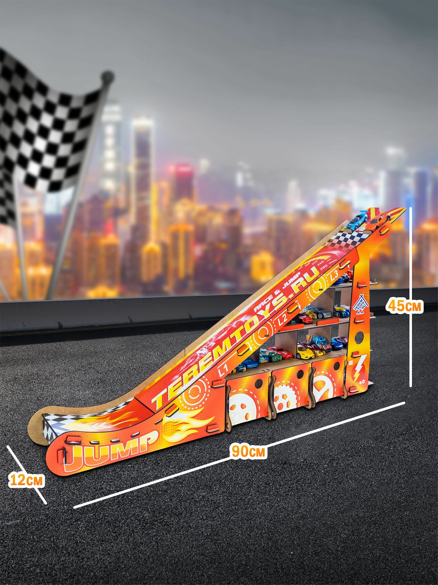 Парковка для машинок с трамплином и пусковым механизмом Jump, гараж, паркинг, полка для машинок