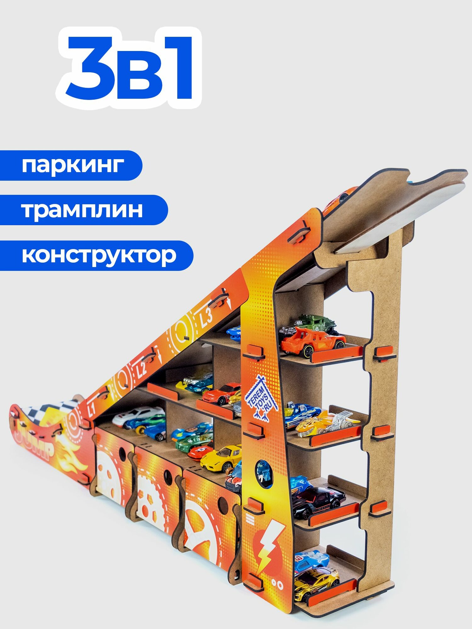 Купить Парковка для машинок с трамплином и спусковым механизом Jump Color, гараж, паркинг, полка для машинок