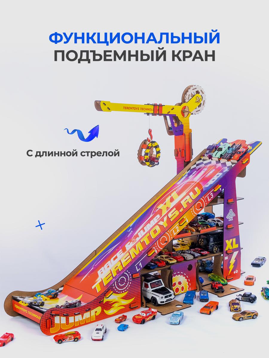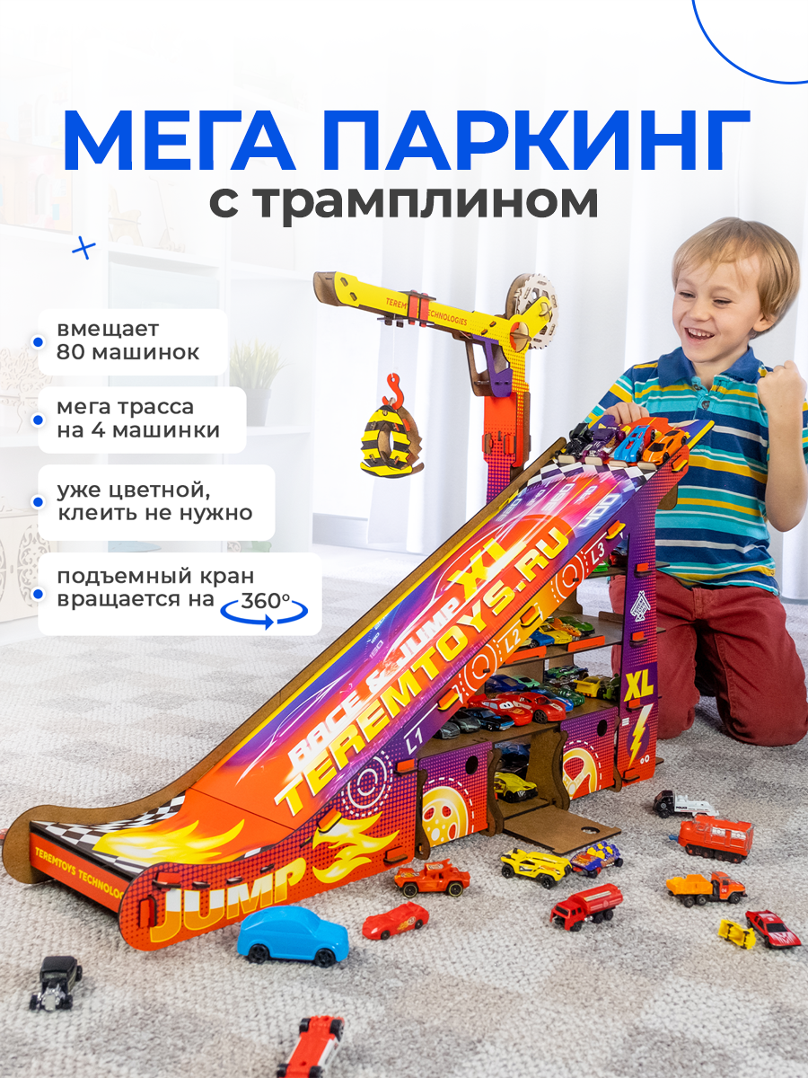 Парковка для машинок с трамплином и пусковым механизмом Jump, гараж, паркинг, полка для машинок