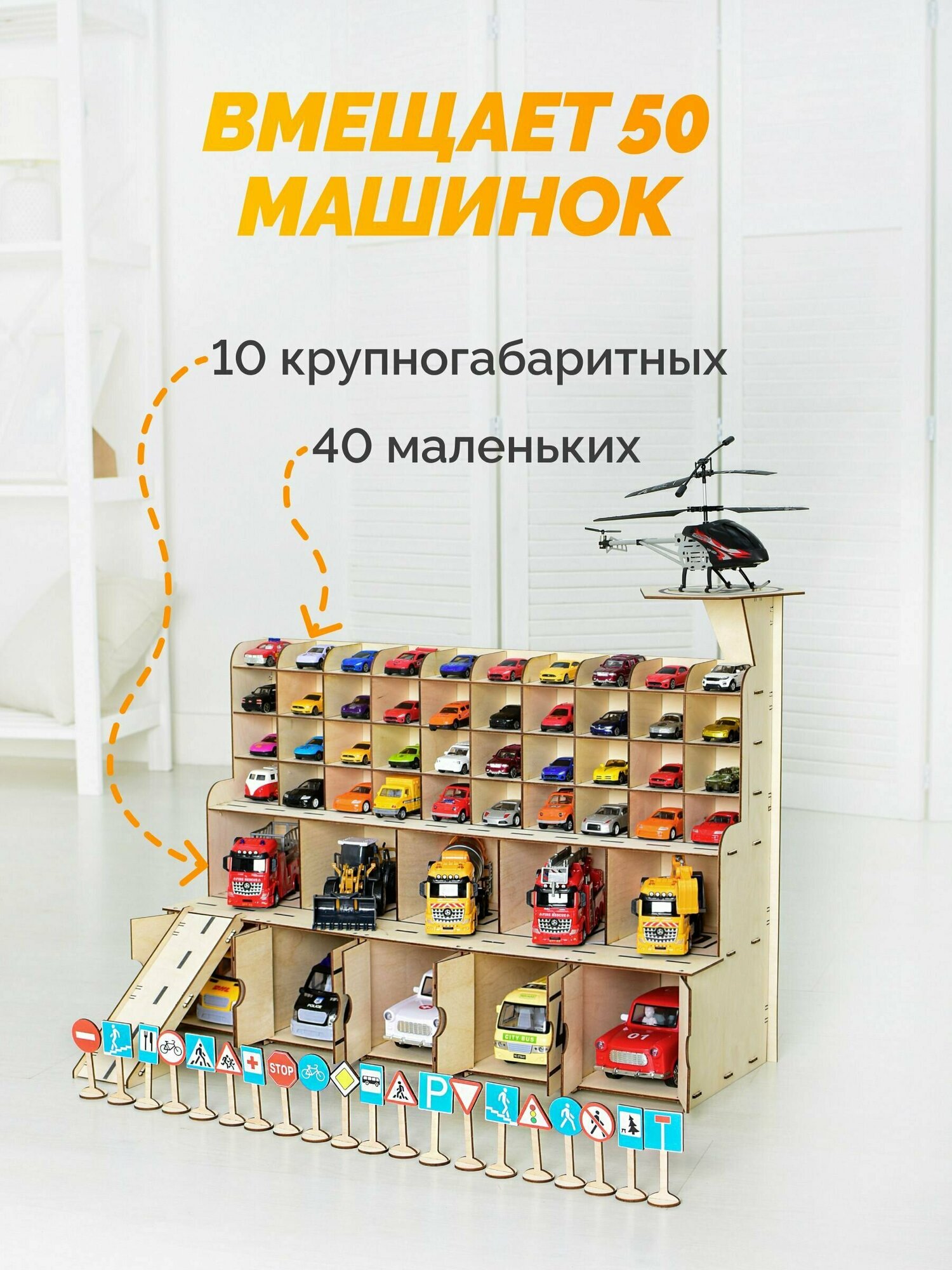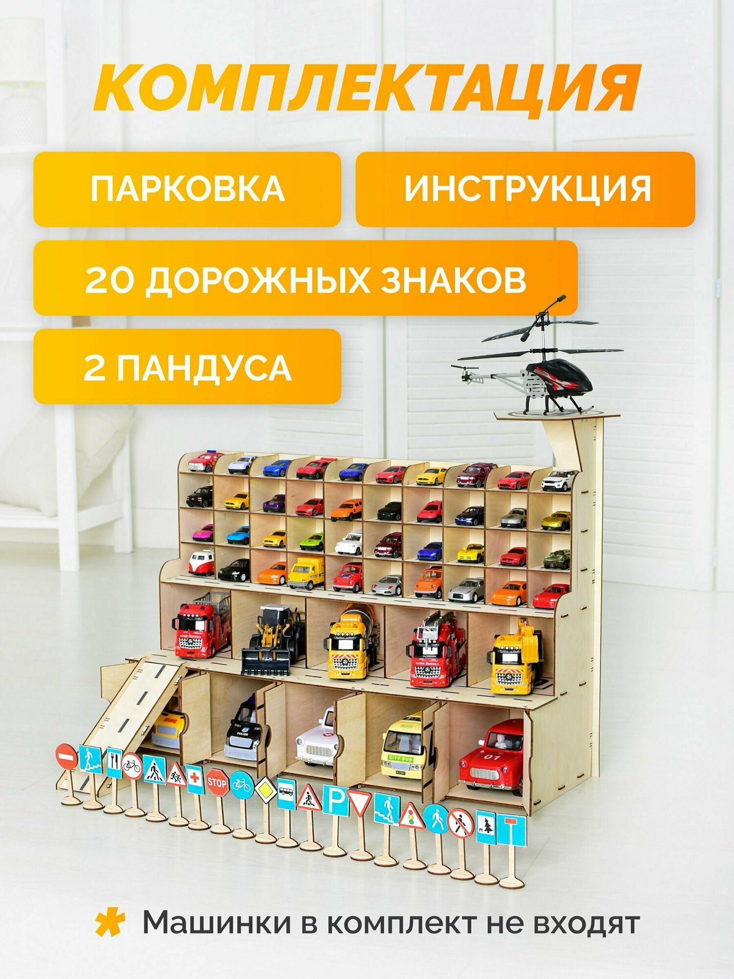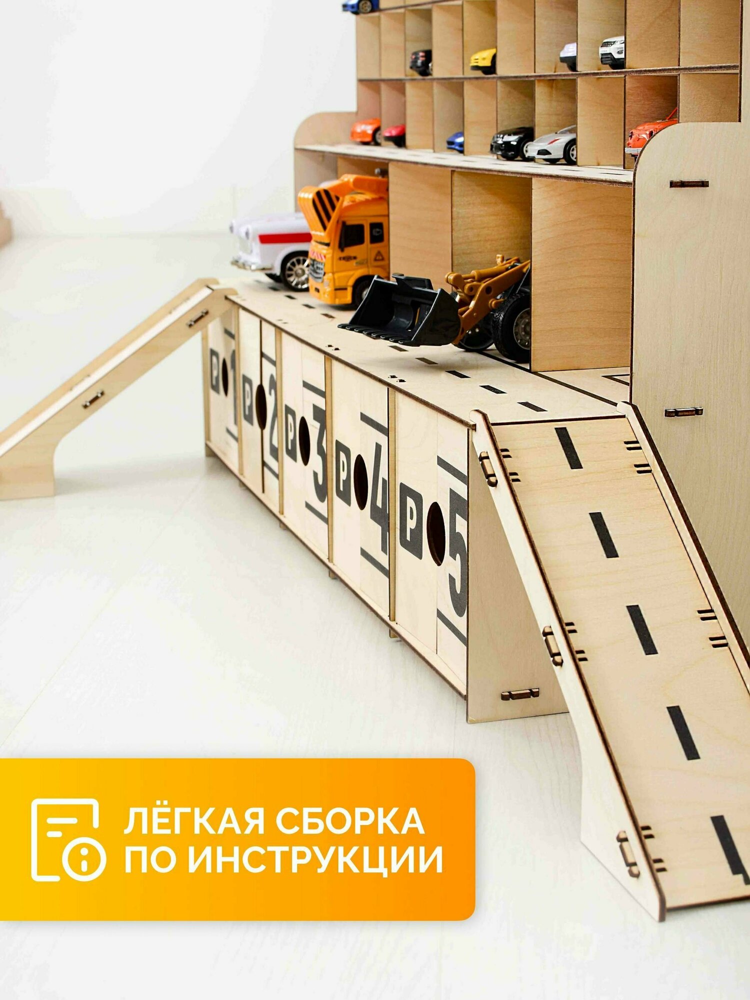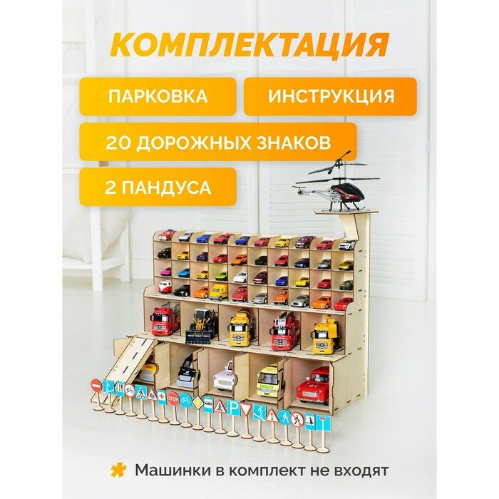 Парковка для машинок детская деревянная MEGA TOYS / игрушечный гараж конструктор паркинг полицейских автогараж интересное: