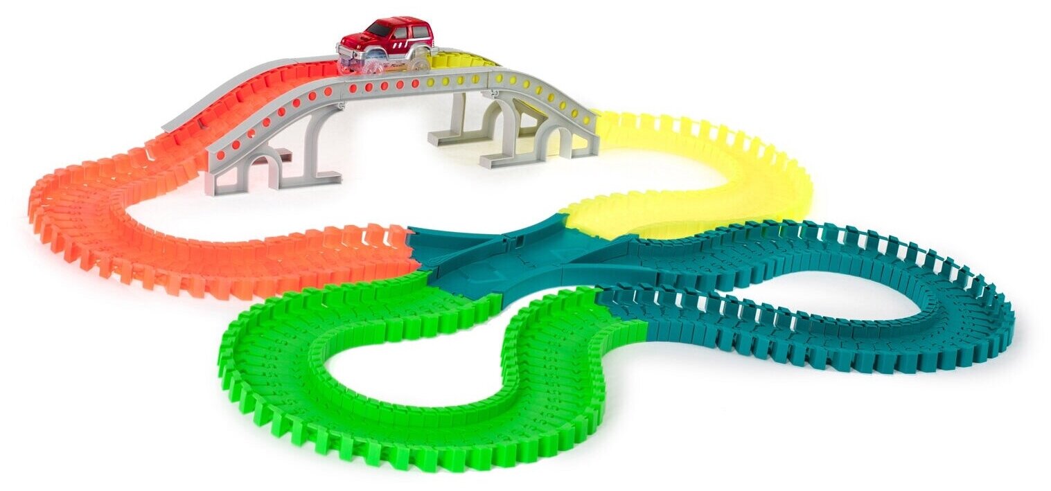 | Комплектация | 200 сегментов, 1 светящаяся машинка, 2 перекрестка со стрелкой, 1 мост |