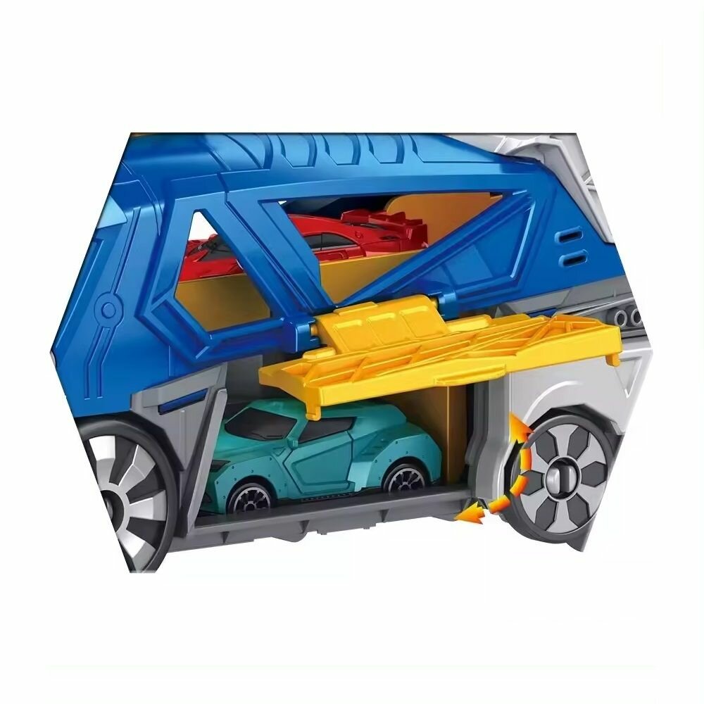 Детский гоночный автотрек с 6 машинками и автовозом Акула, 2 скорости запуска машинок интересное: