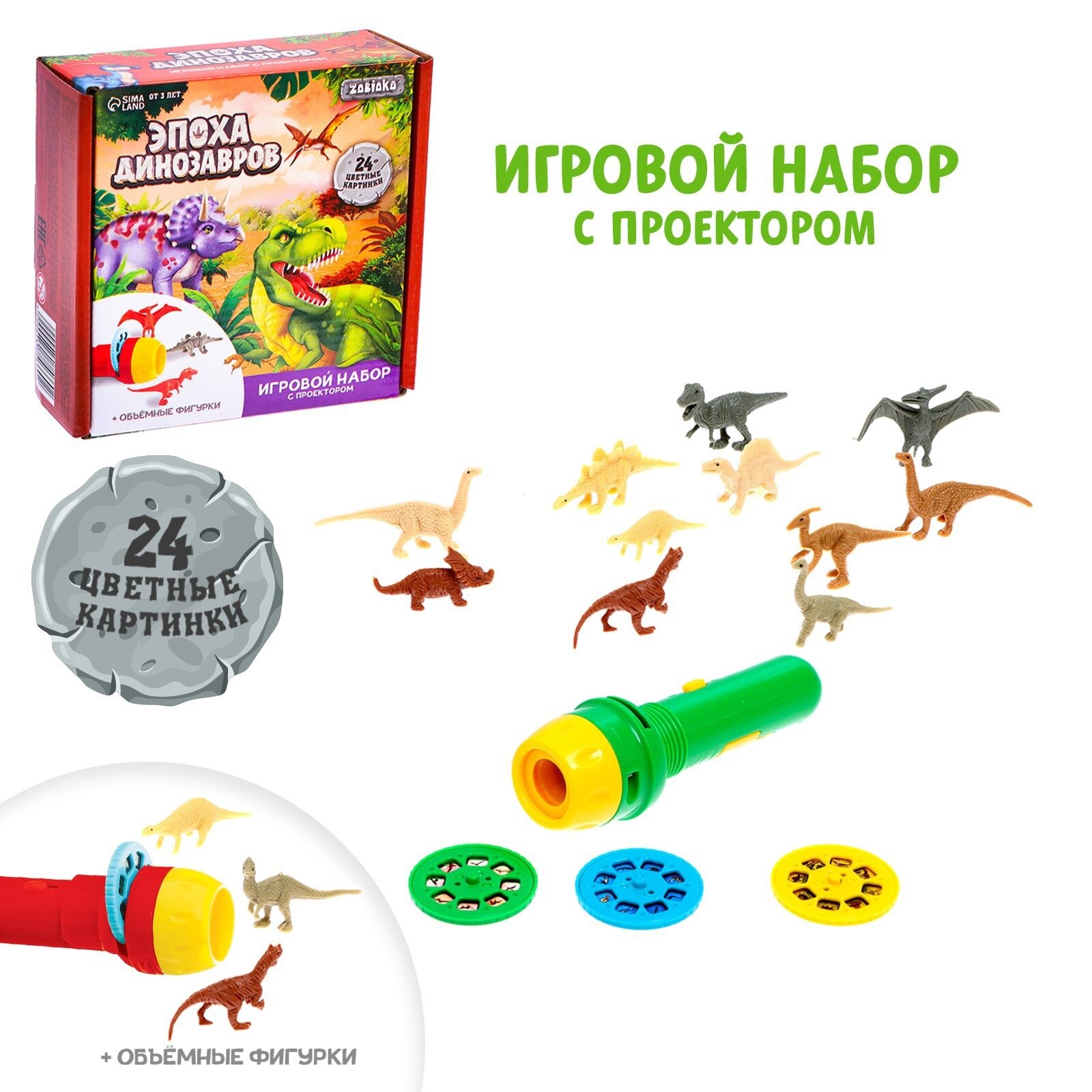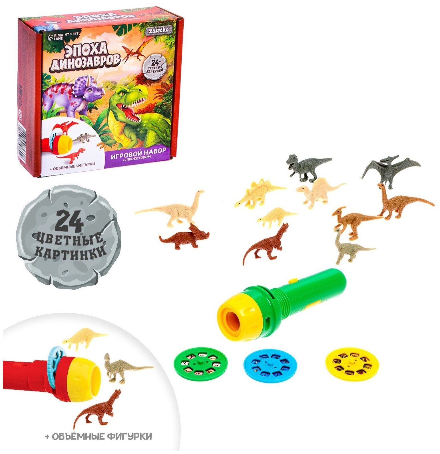 Купить Проектор-фонарик ZABIAKA с фигурками Эпоха динозавров, в коробке