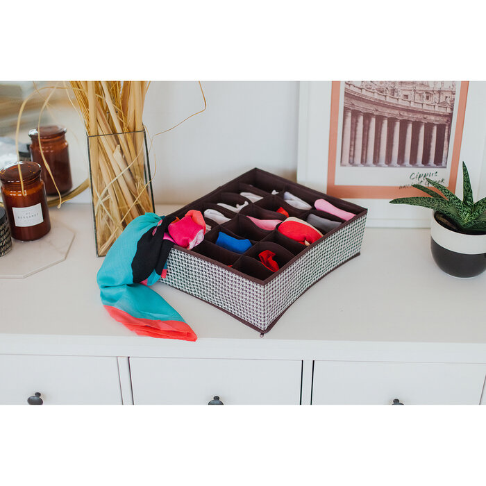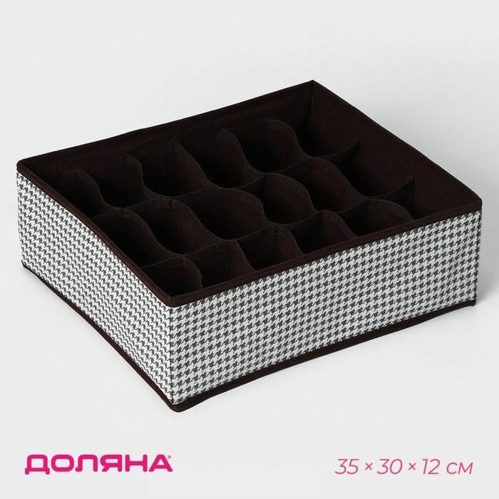 Купить Органайзер для хранения белья Доляна Вилли, 18 ячеек, 35 30 12 см, цвет бело-коричневый