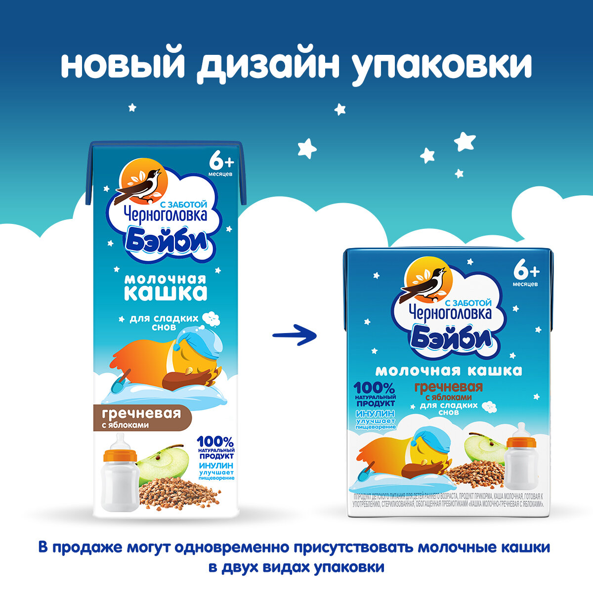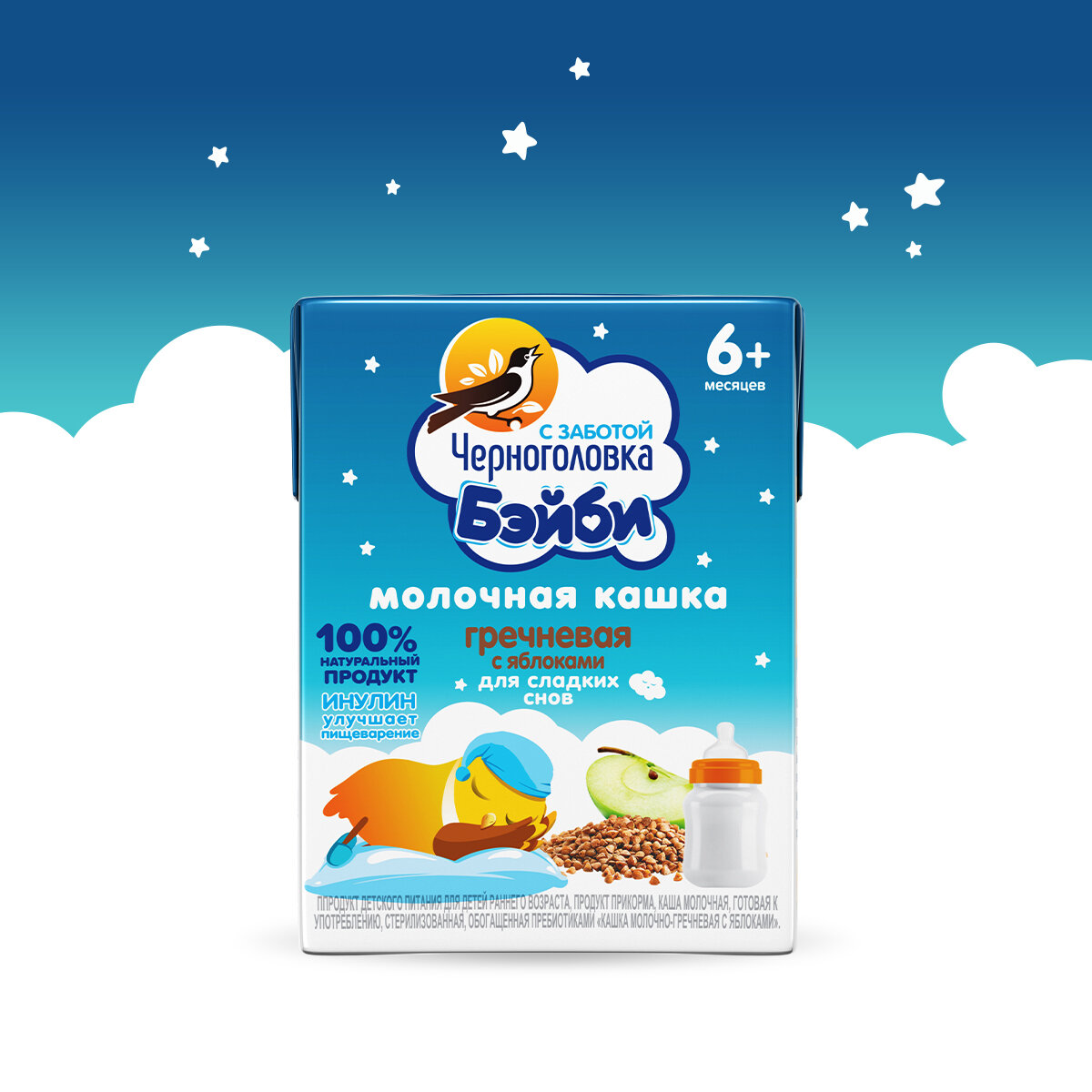 Кашка питьевая детская Черноголовка Бэйби молочно-гречневая с яблоками, 12 шт по 200 мл интересное:
