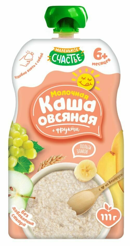 Купить Маленькое счастье Молочная Кашка Овсяная с Фруктами {с 6 мес} (Гуалапак) 111г