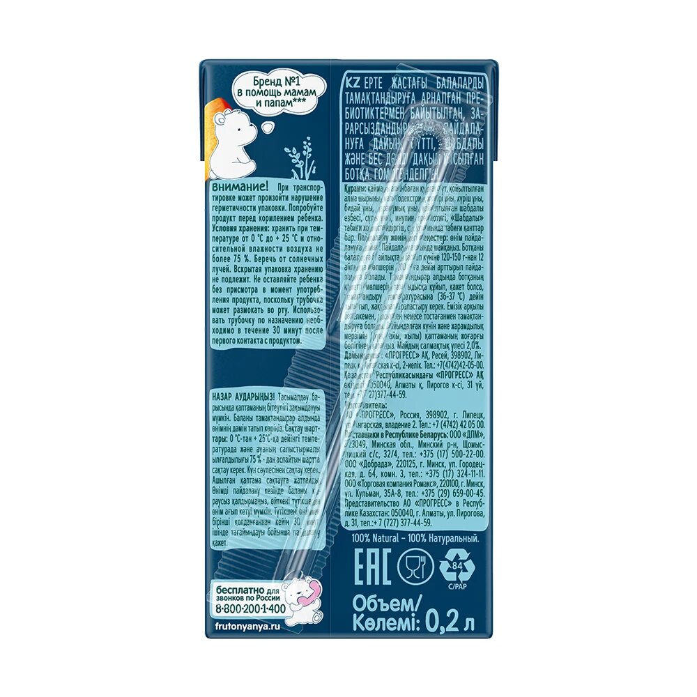 | Содержит | пребиотики / фрукты |