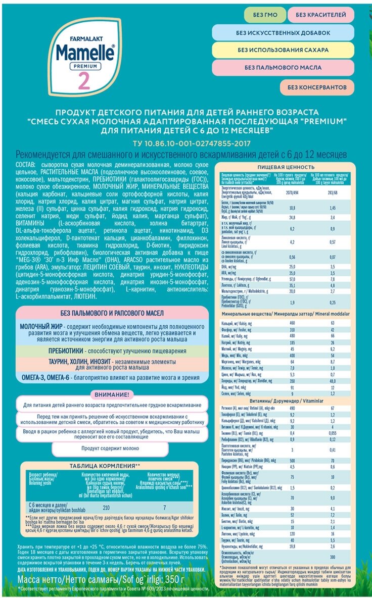 MAMELLE PREMIUM 2 cмеcь молочная cухая, 6-12мес., 350г. интересное: