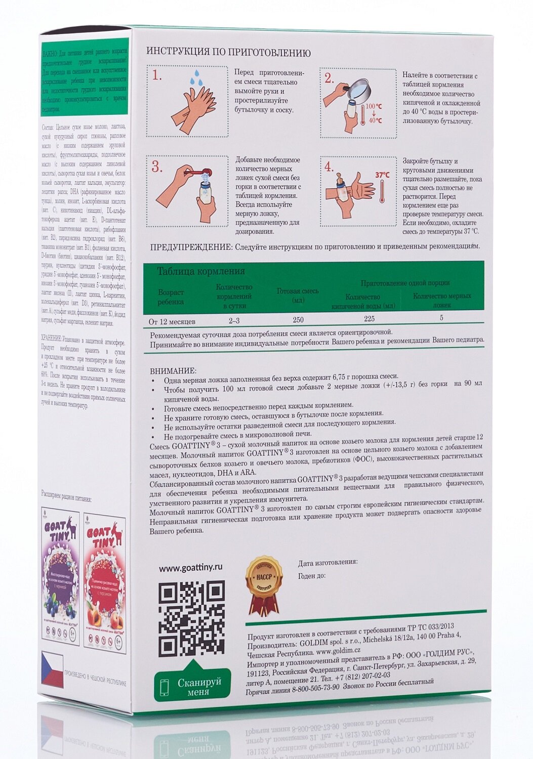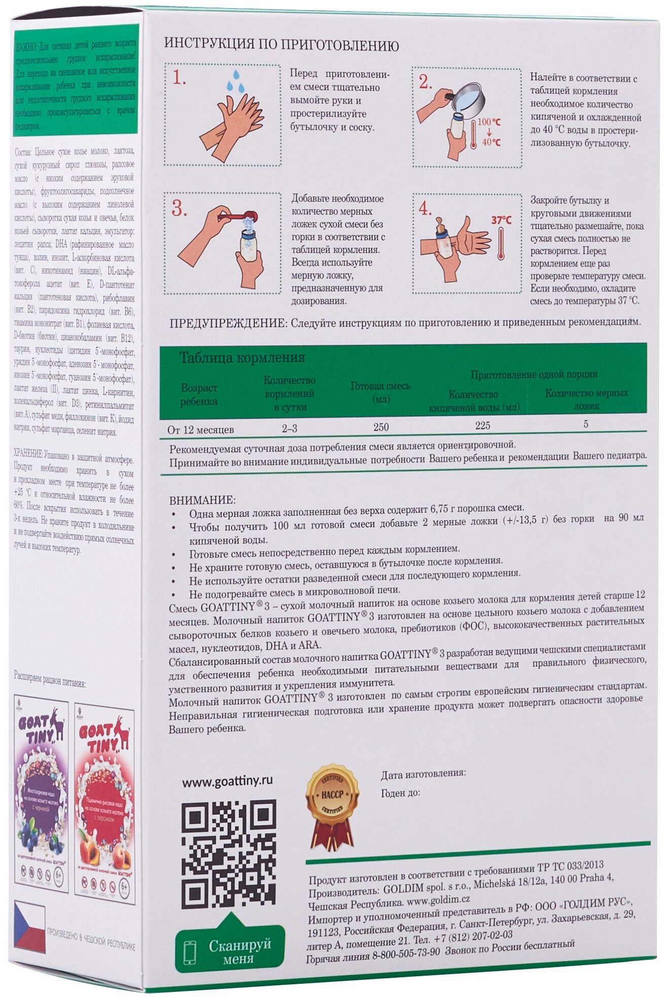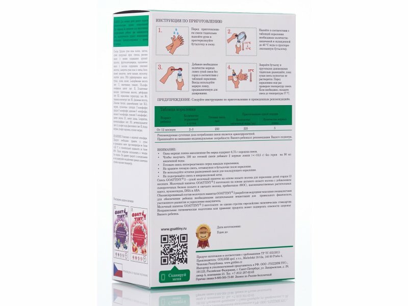 | Содержит | козье молоко / пребиотики |