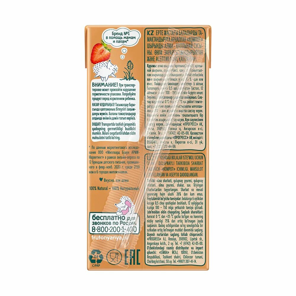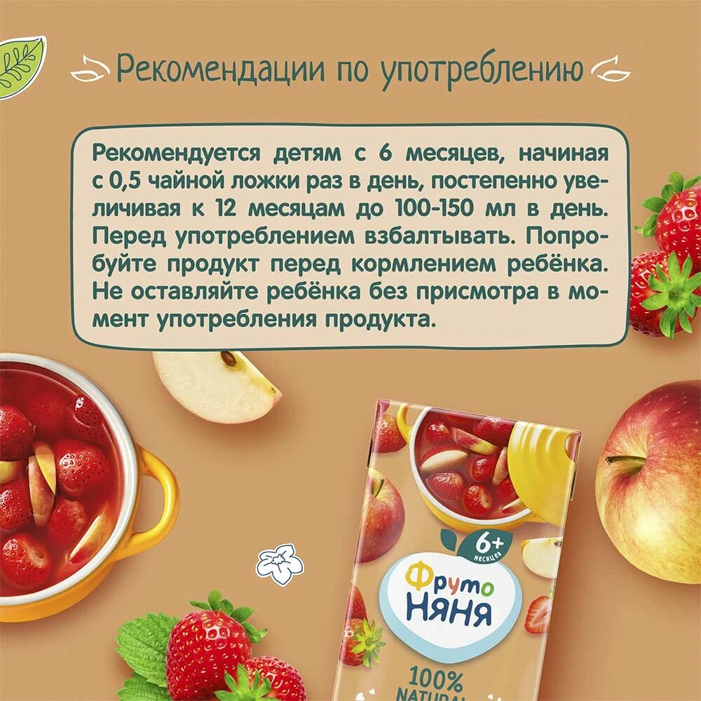 Компот детский ФрутоНяня из яблок и клубники с 6 месяцев 0,2 л 5 шт интересное: