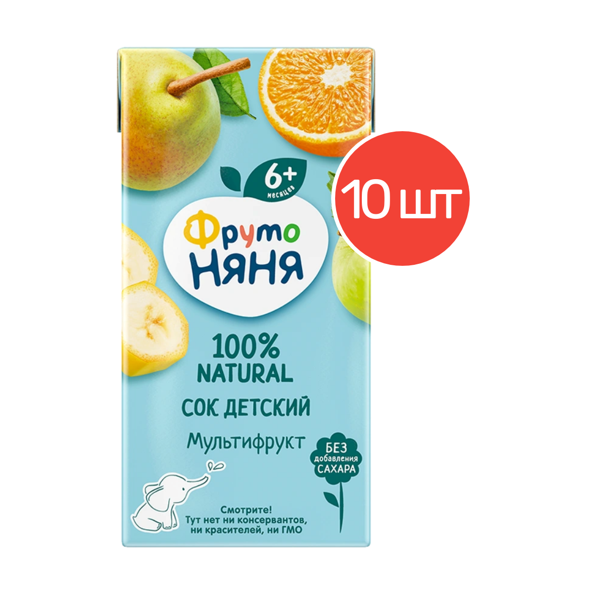 Купить Сок ФрутоНяня мультифруктовый с 6 месяцев 0.2 л 10 шт