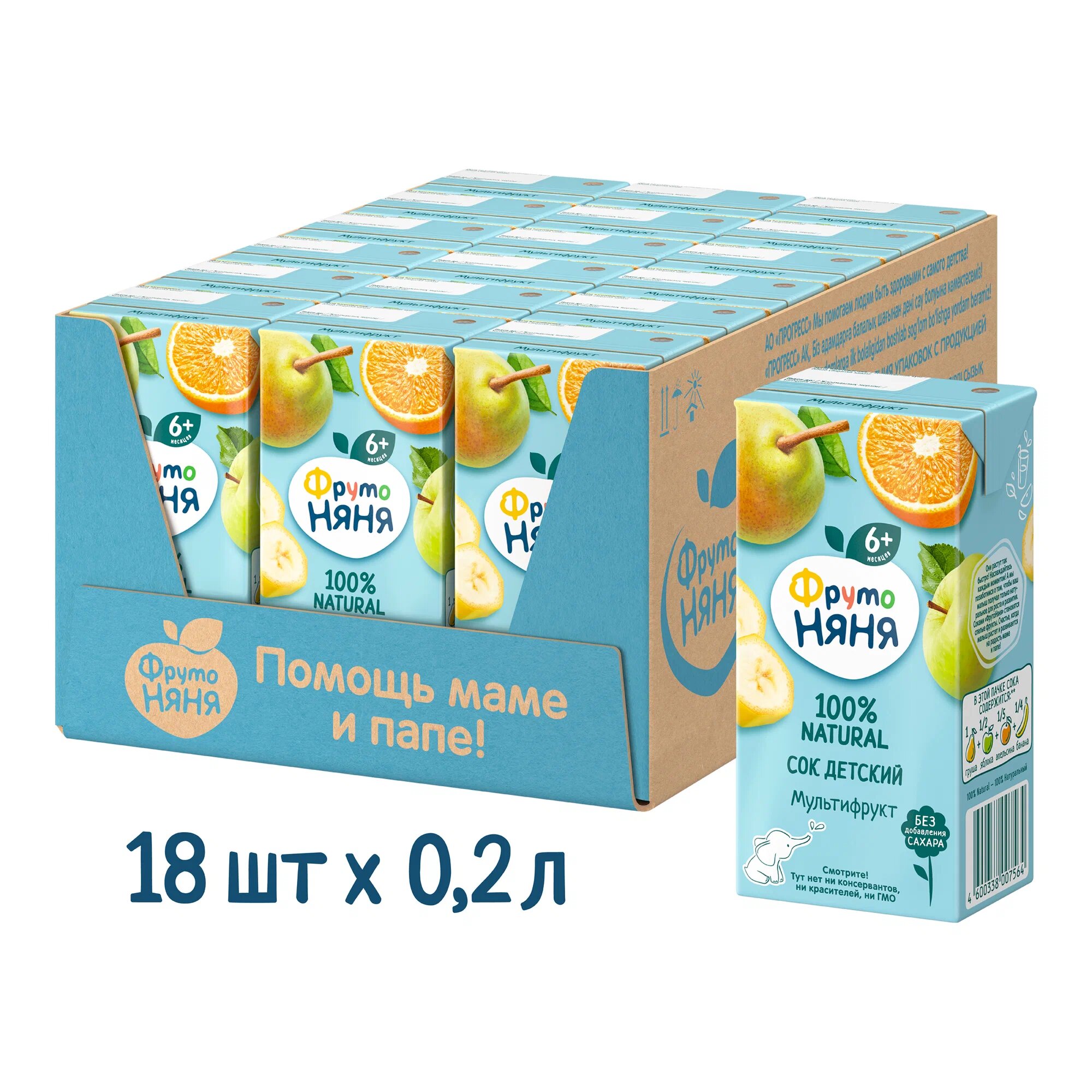 Сок ФрутоНяня груша, яблоко, банан, апельсин - мультифрукт, 0,2л (18 шт)