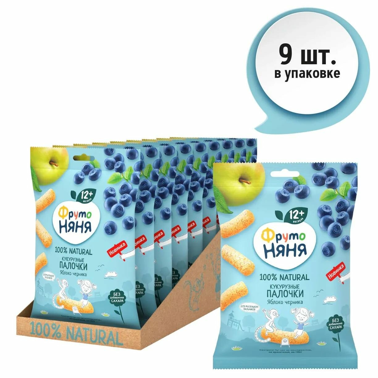 Кукурузные палочки с яблоком и черникой ФрутоНяня 20г 9 шт интересное: