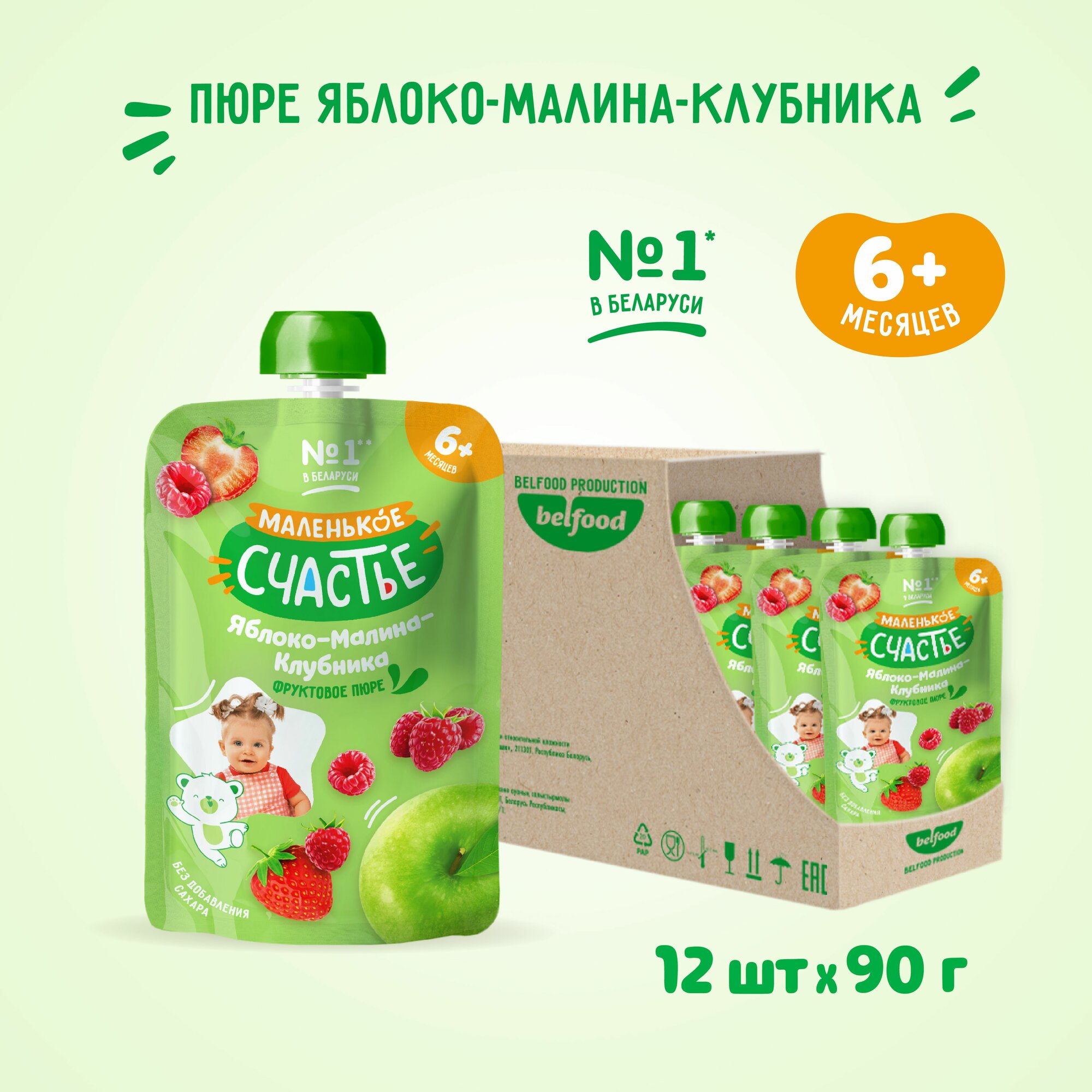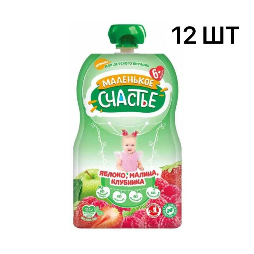 Пюре детское Маленькое счастье фруктовое Яблоко-Малина-Клубника 90 г x 12 шт с 6 месяцев