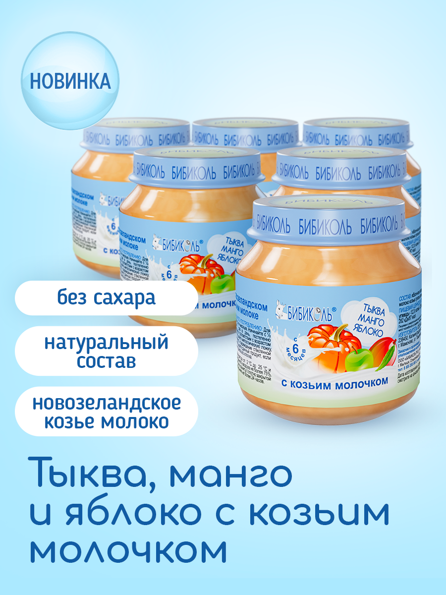Фруктово-овощное пюре с козьим молоком «Тыква, манго и яблоко с козьим молочком» 6*100гр. интересное:
