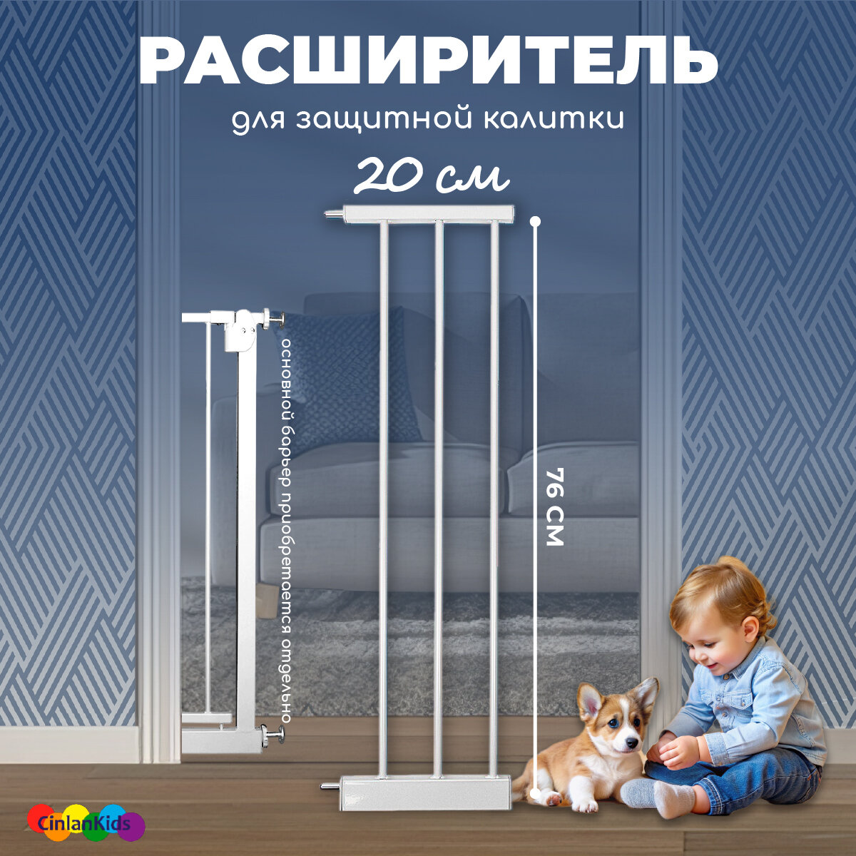 Купить Дополнительная секция, расширитель 20 см для барьера-калитки, белый, CINLANKIDS