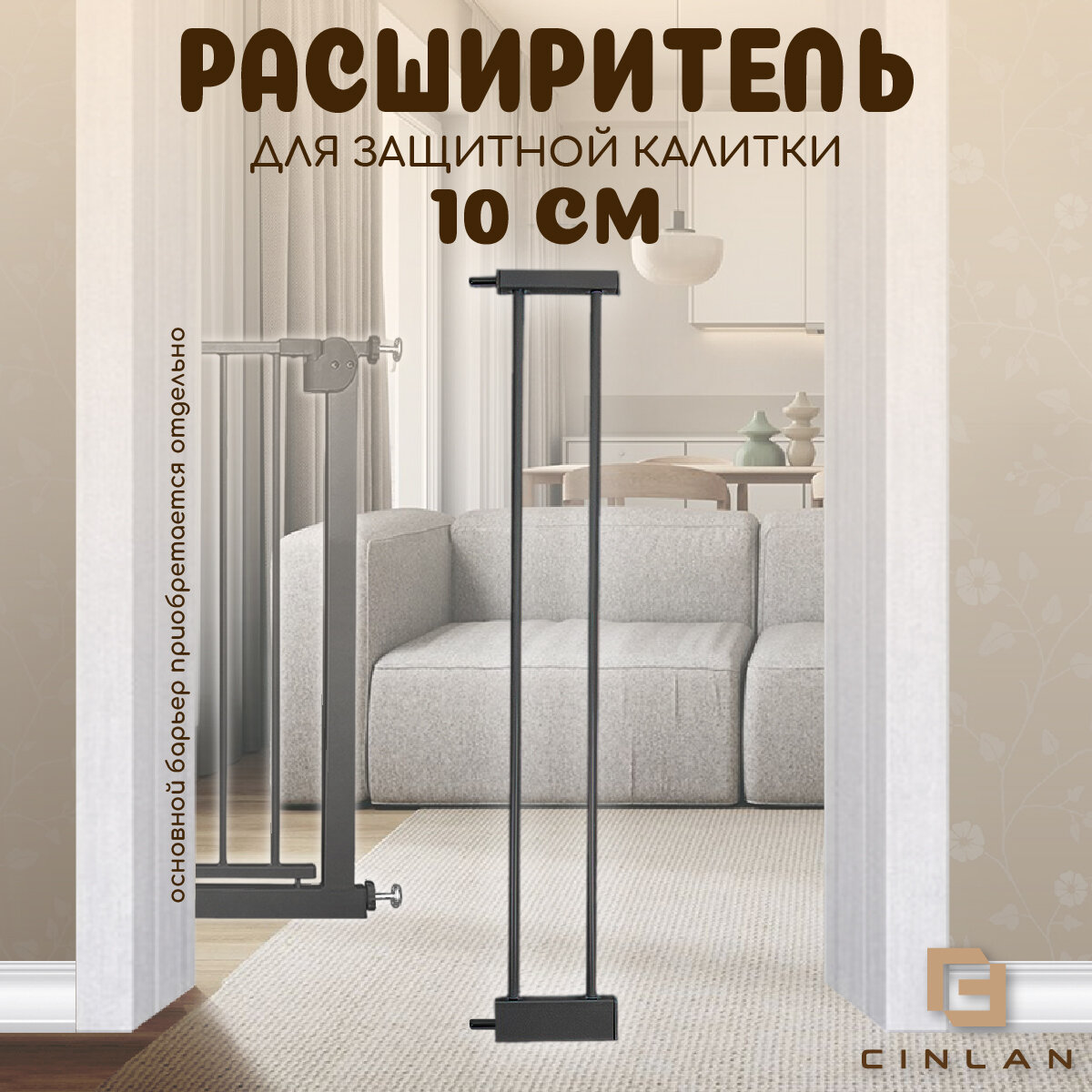 Купить Дополнительная секция, расширитель 10 см для барьера-калитки, черный, CINLANHOME
