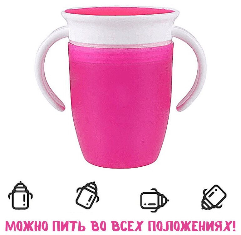 Детский 360 поильник с крышкой-непроливайкой и удобными ручками (розовый цвет) интересное: