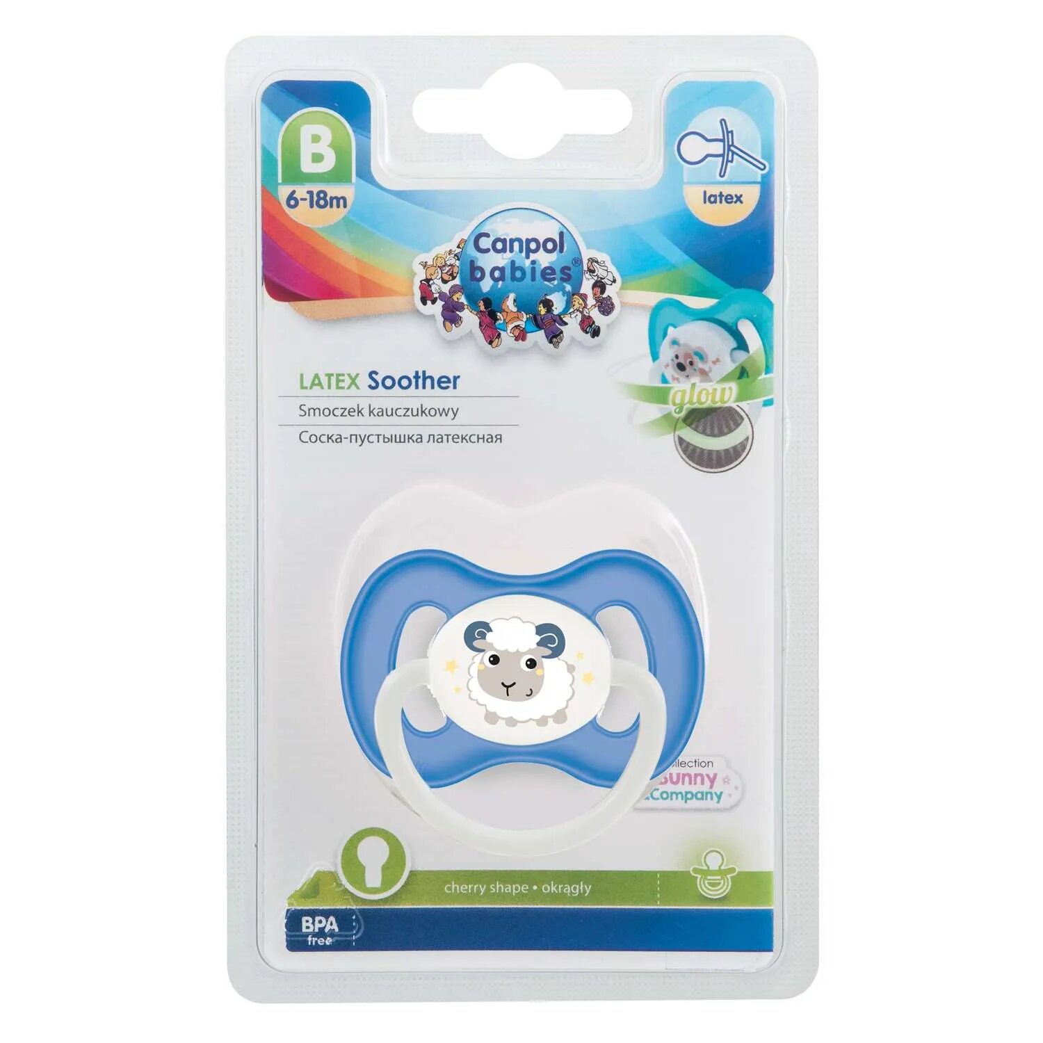 Соска-пустышка CANPOL BABIES BUNNY COMPANY латекс. круглая (6-18мес.) голубая