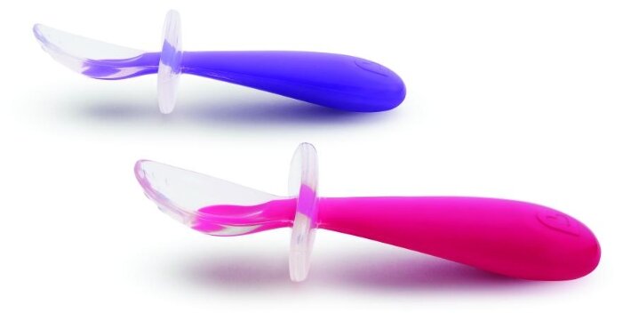 Набор ложек обучающих Munchkin Gentle Scoop, пластик/силикон, с ограничителем, розовый/сиреневый, 2 шт