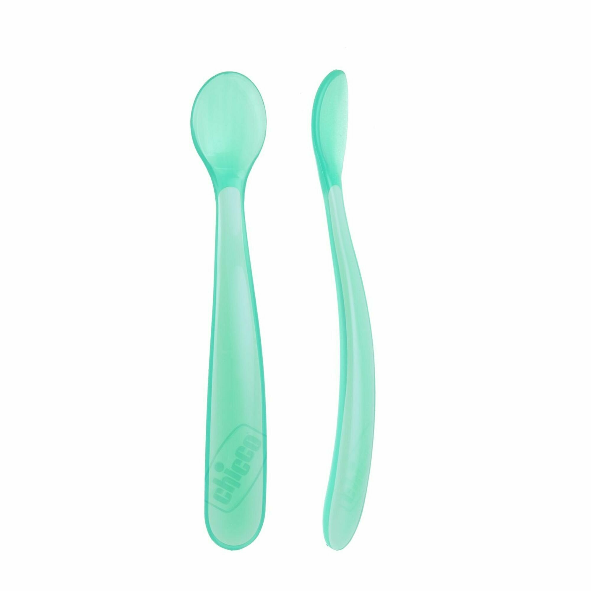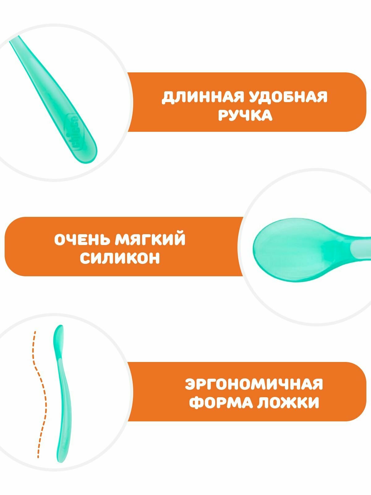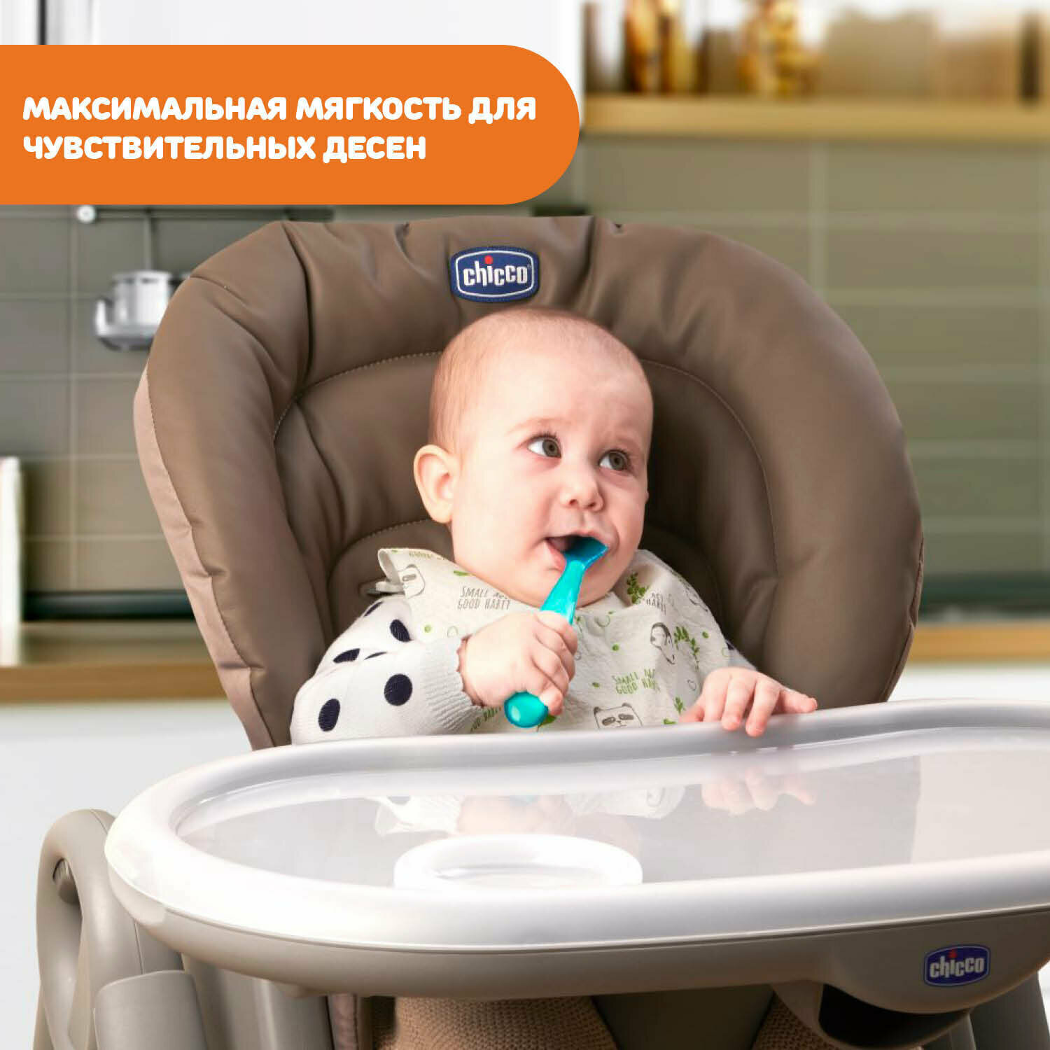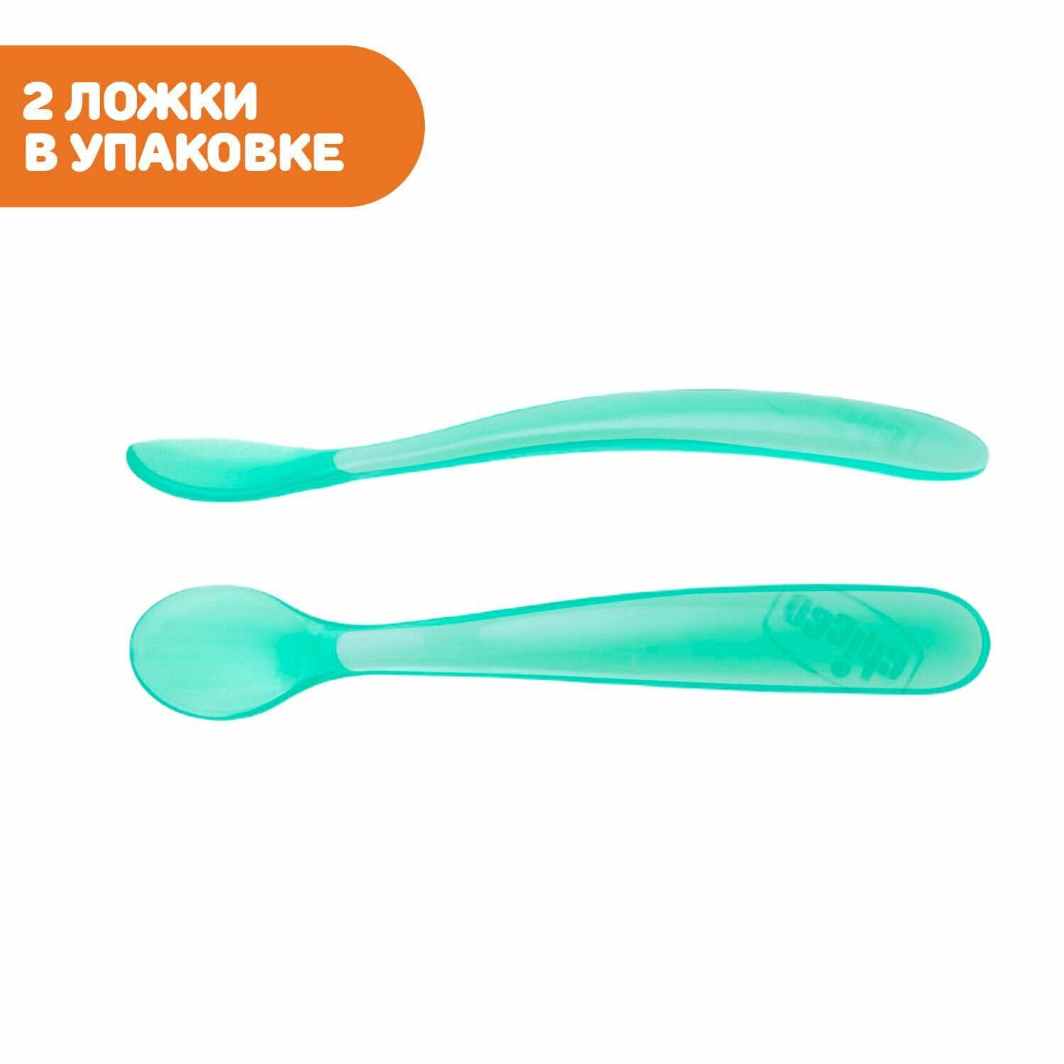 Ложка детская для кормления Chicco мягкая силиконовая от 6 месяцев 2 шт голубая