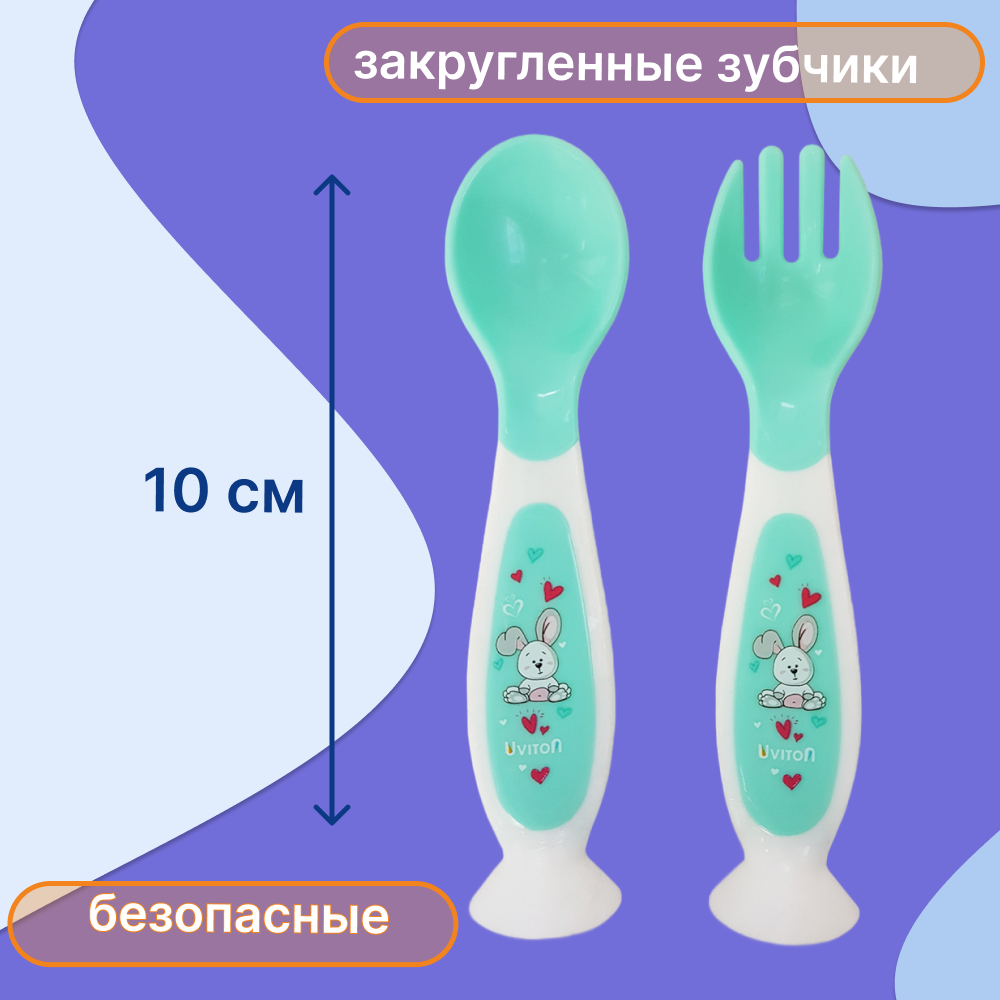Ложка и вилка для прикорма, набор на присоске детский, 6+ мес