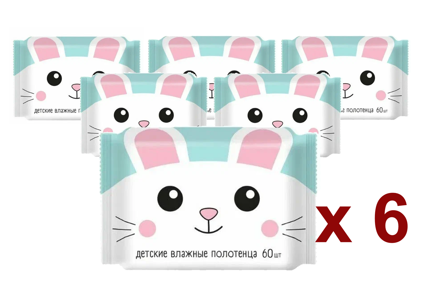 Влажные полотенца Детские с экстрактом ромашки, алоэ и витамином Е, 60 шт.