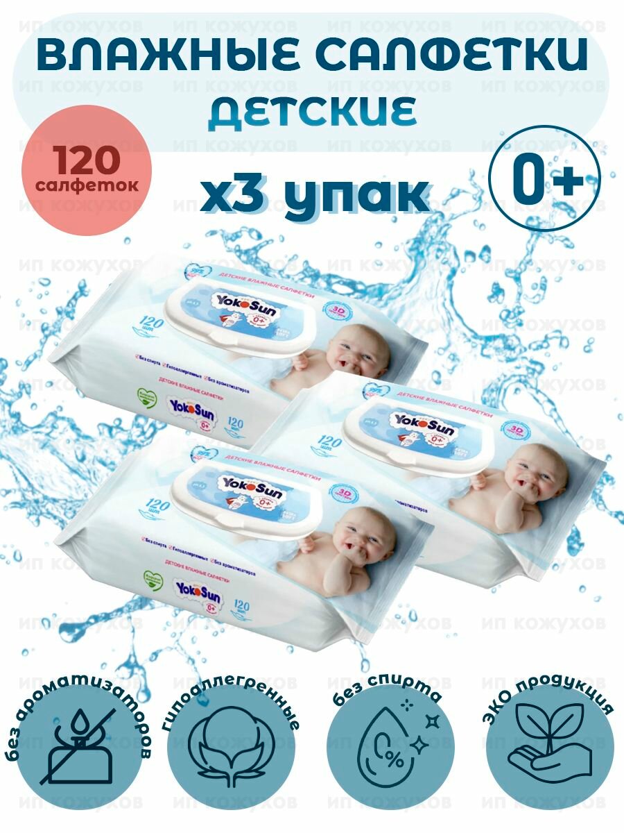 Детские влажные салфетки YokoSun "Успокаивающий эффект" - 3 упаковки по 120 штук интересное: