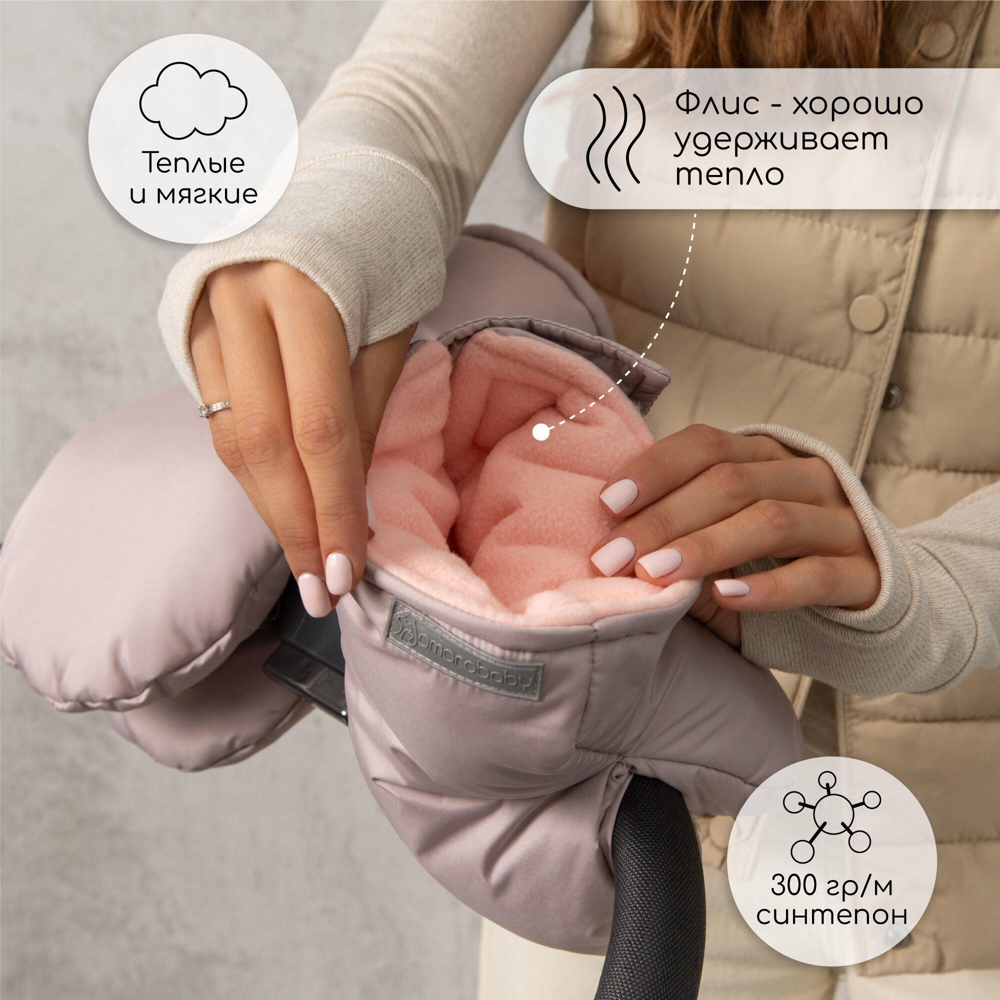 Муфты на ручку коляски AMAROBABY MITTS, пудровый интересное: