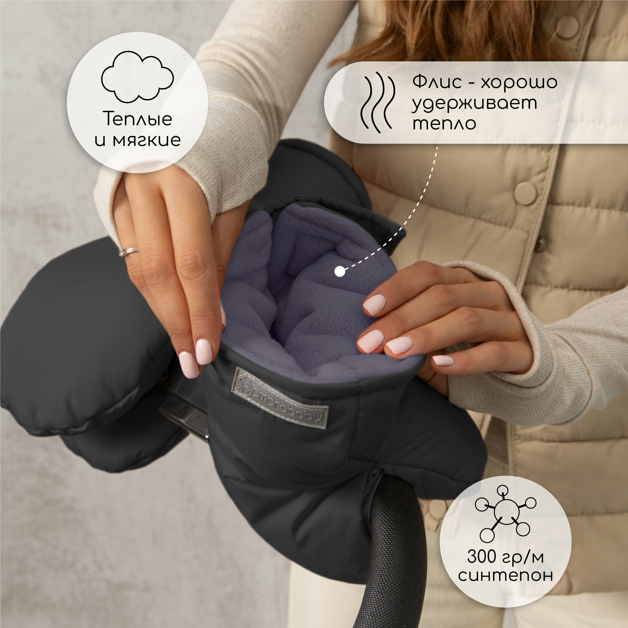 Муфты на ручку коляски AMAROBABY MITTS, черный интересное:
