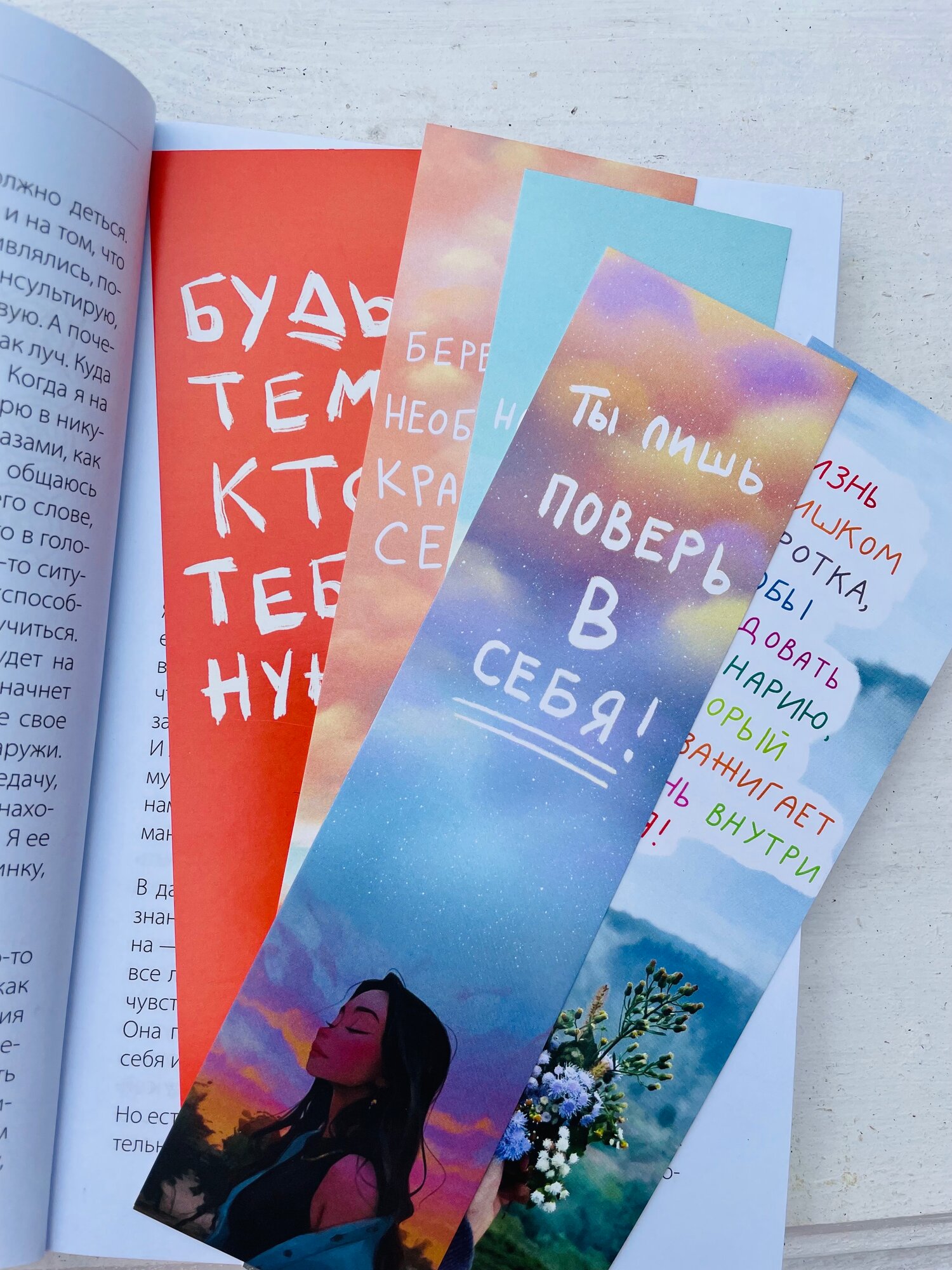 Набор закладок для книг с мотивацией / мотивационные закладки для книг/ 10 штук /коровка