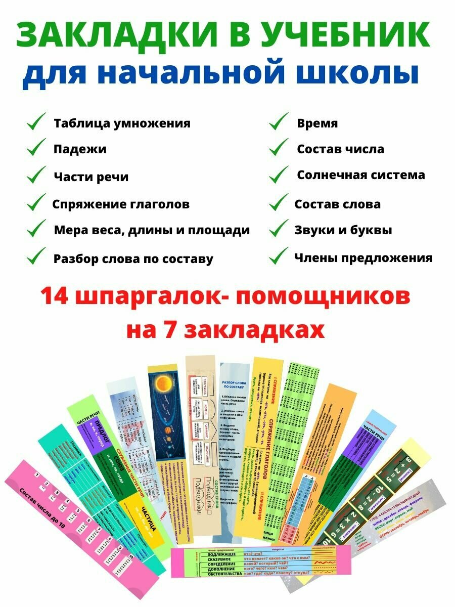 | Дополнительная информация | Двусторонние ламинированные помощники для школьника 1-4 класса, с основными правилами по английскому языку, шпаргалки с яркими и понятными схемами для скорейшего запоминания, |