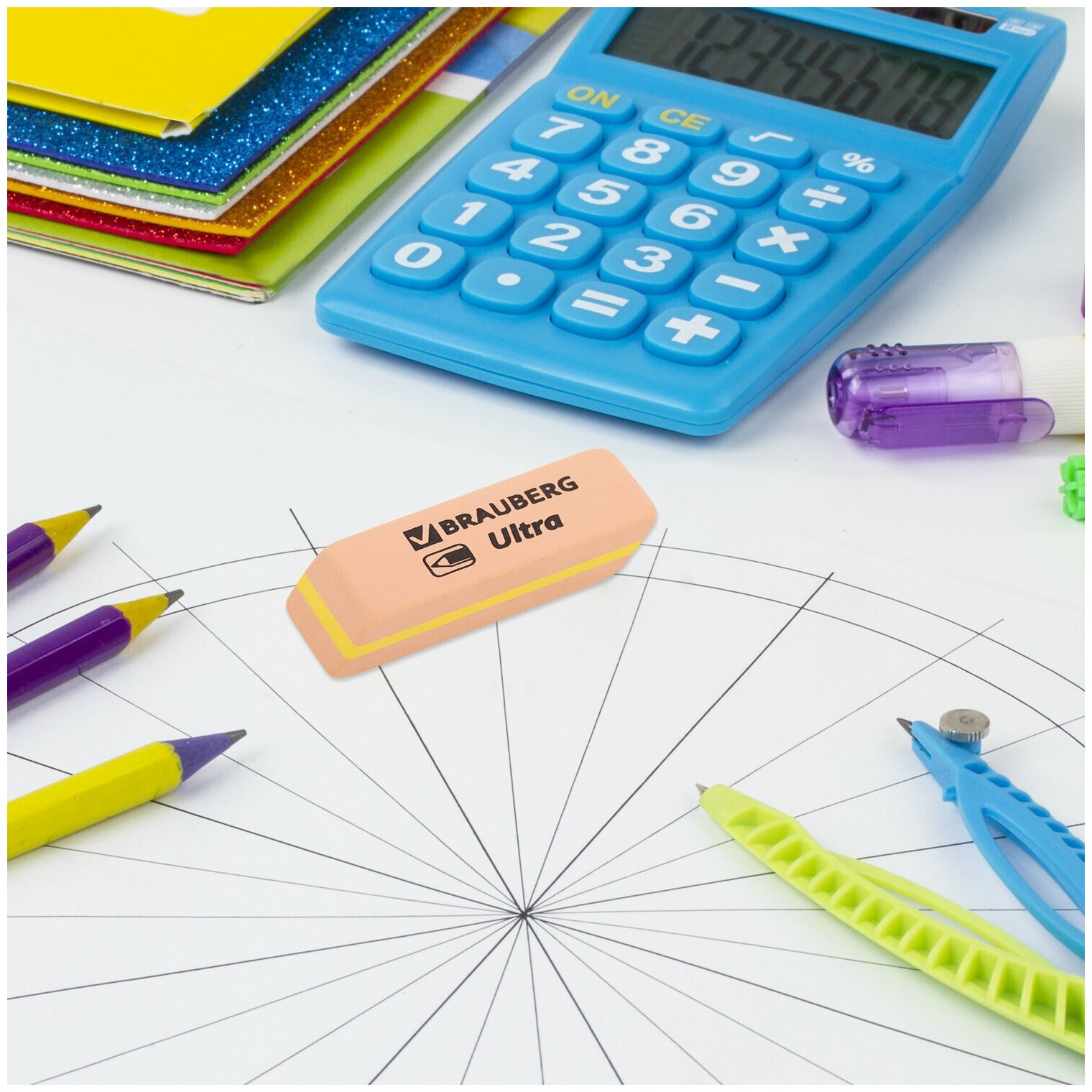 Ластики BRAUBERG "Ultra" 6 шт, размер ластика 41х14х8 мм, серо-белые, натуральный каучук, 229600