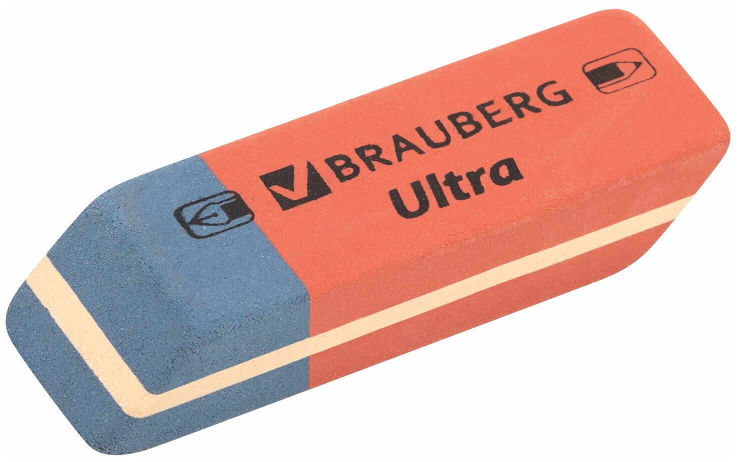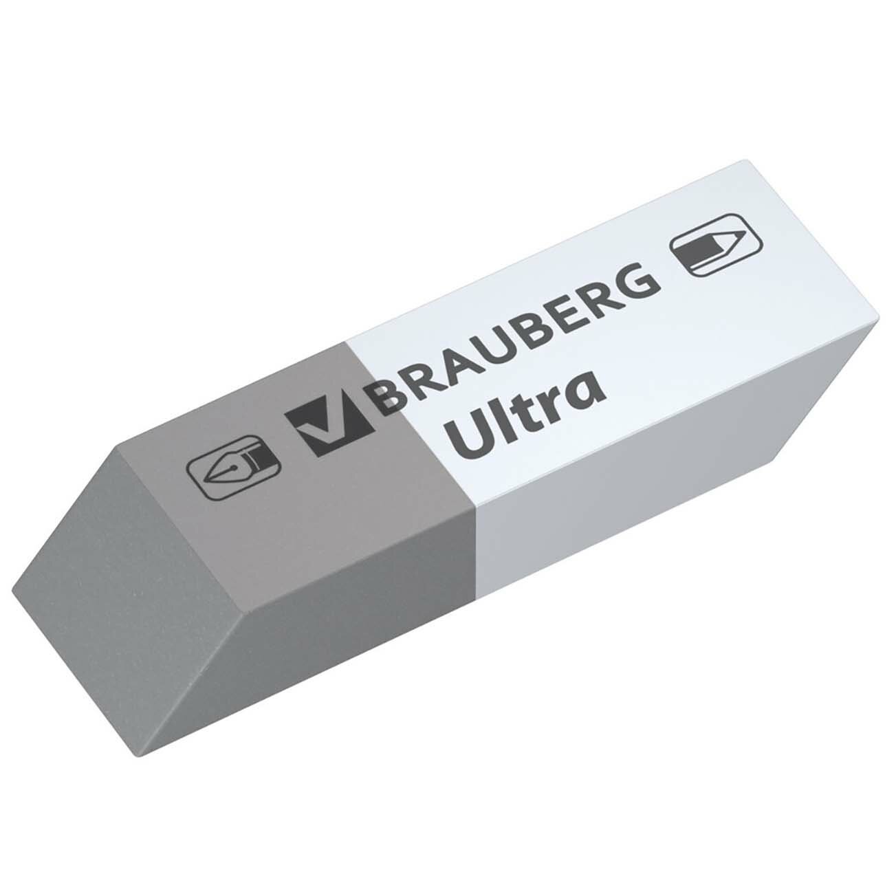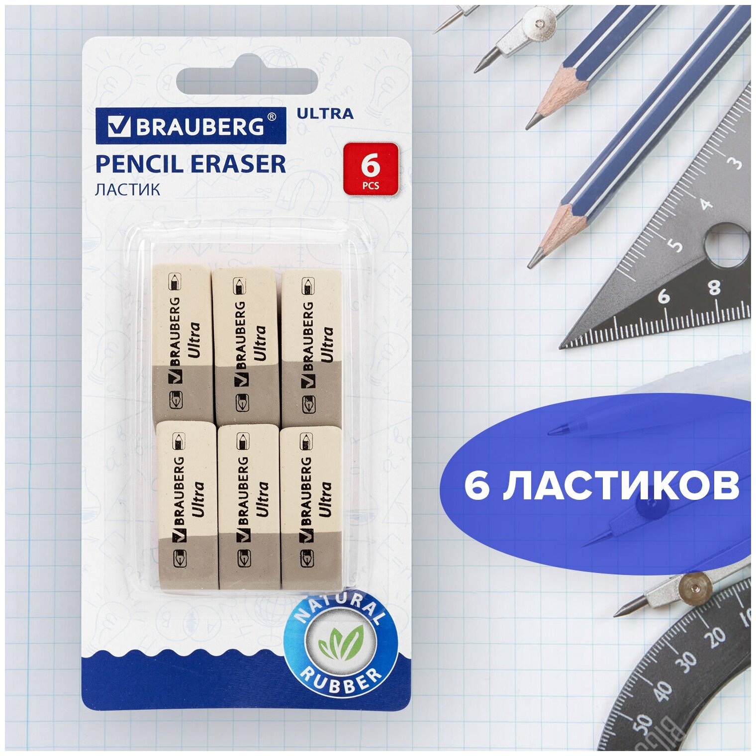 Ластики BRAUBERG "Ultra" 6 шт, размер ластика 41х14х8 мм, серо-белые, натуральный каучук, 229600