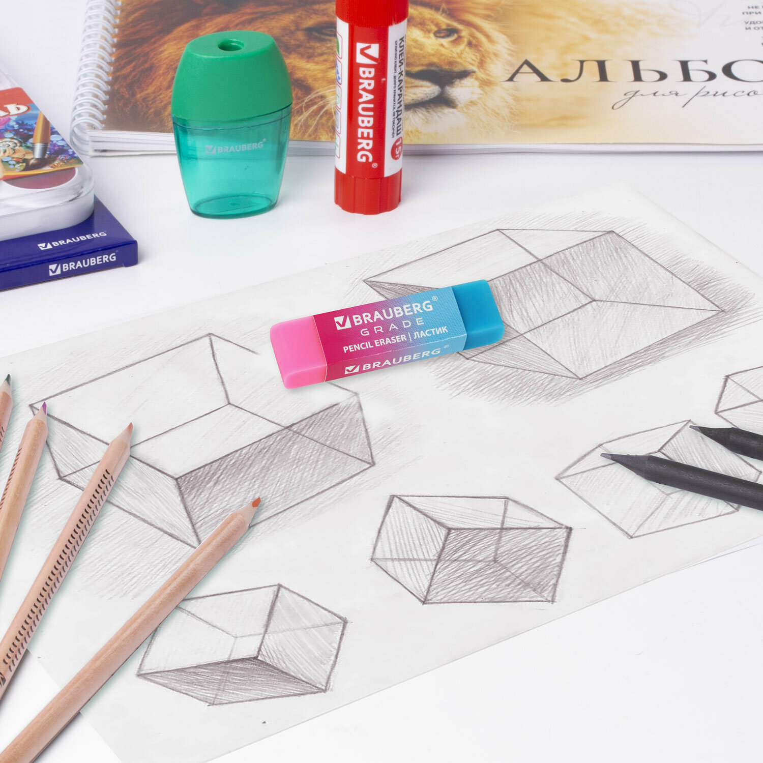 Ластики для школы набор 4 штуки, стирательная резинка Brauberg Grade, размер стерки 60*15*10 мм, упаковка блистер, 271344 интересное:
