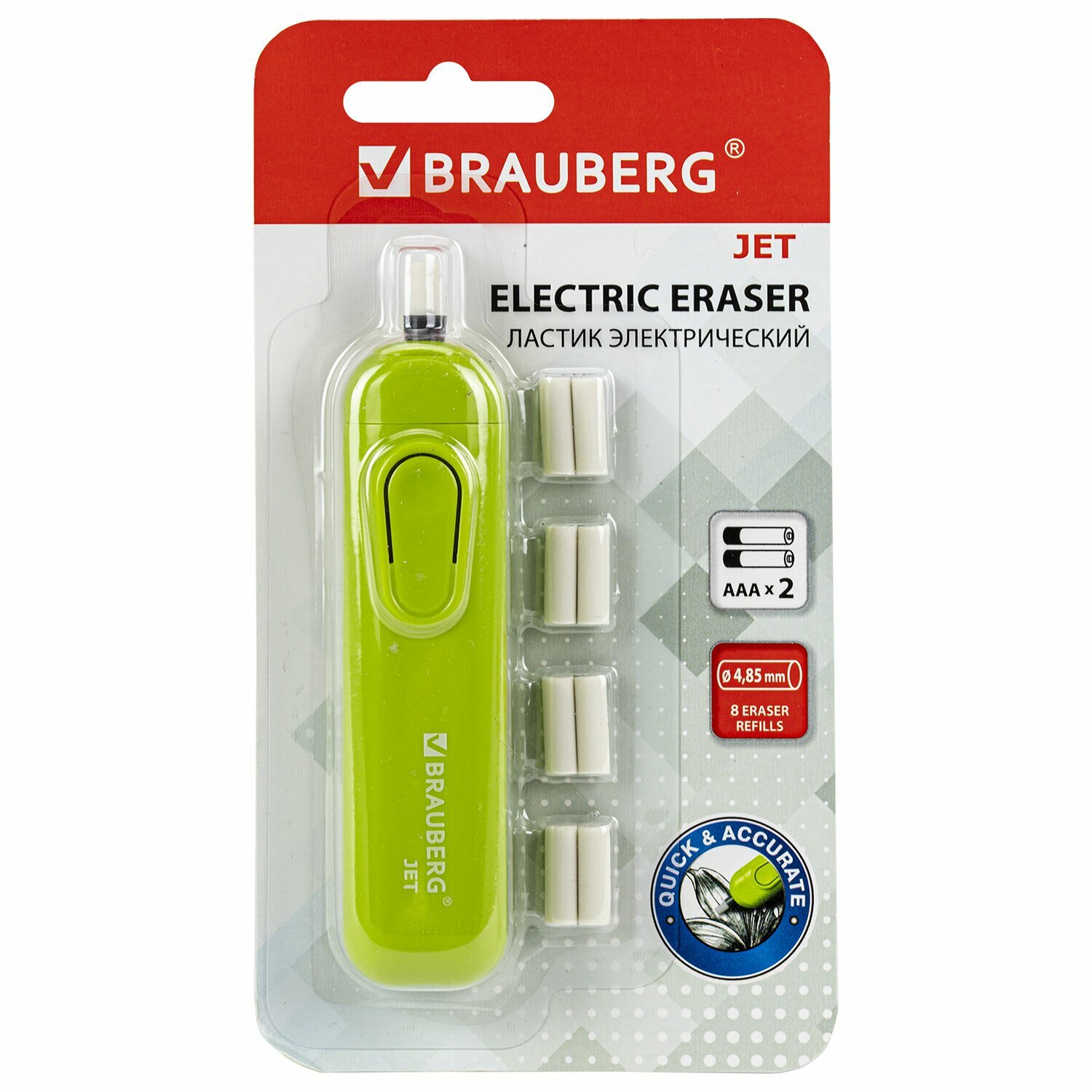 Купить Ластик электрический Brauberg JET, питание от 2 батареек ААА, 8 сменных ластиков, салатовый (229615)