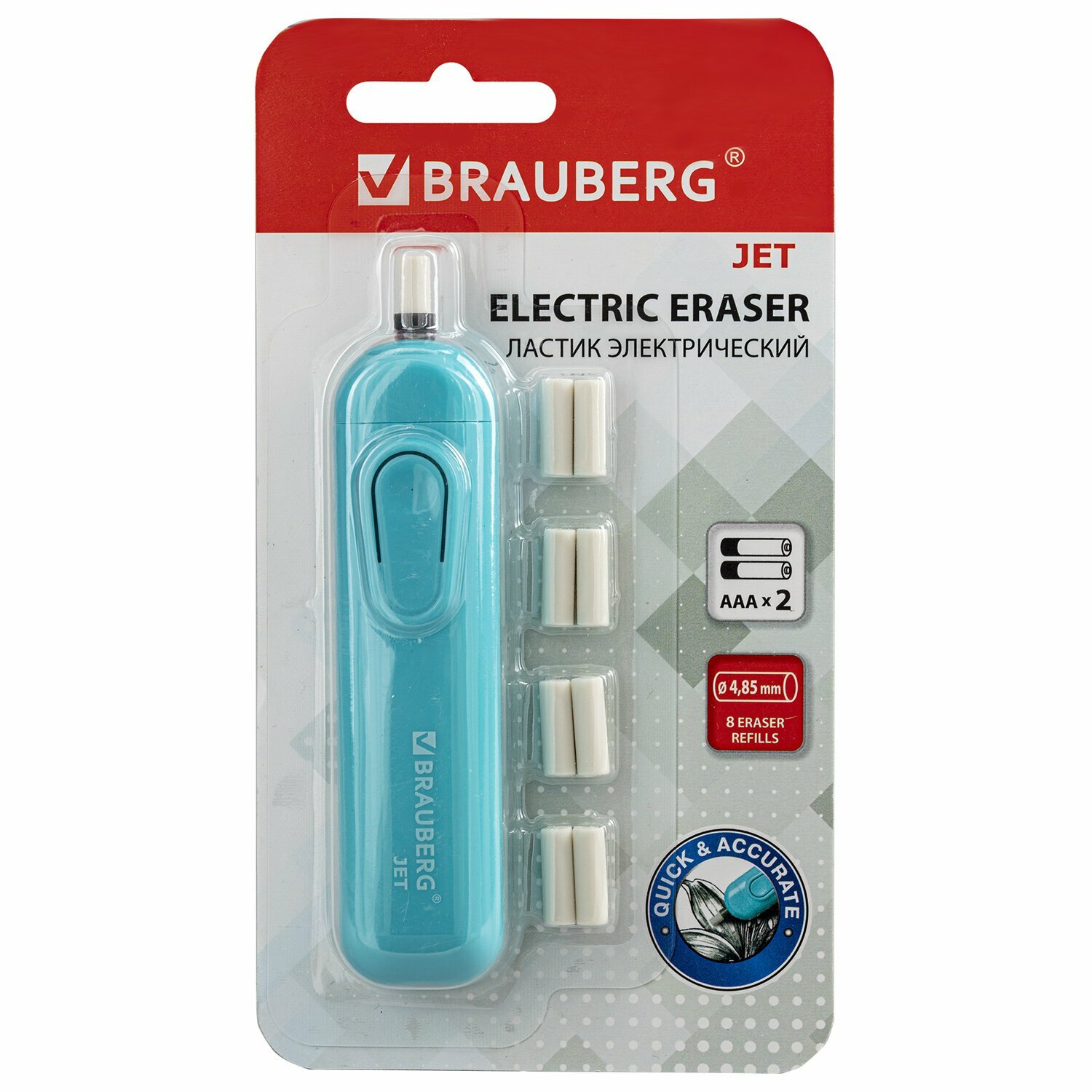 Ластик электрический BRAUBERG "JET", питание от 2 батареек ААА, 8 сменных ластиков, голубой, 229612 (цена за 1 ед. товара)