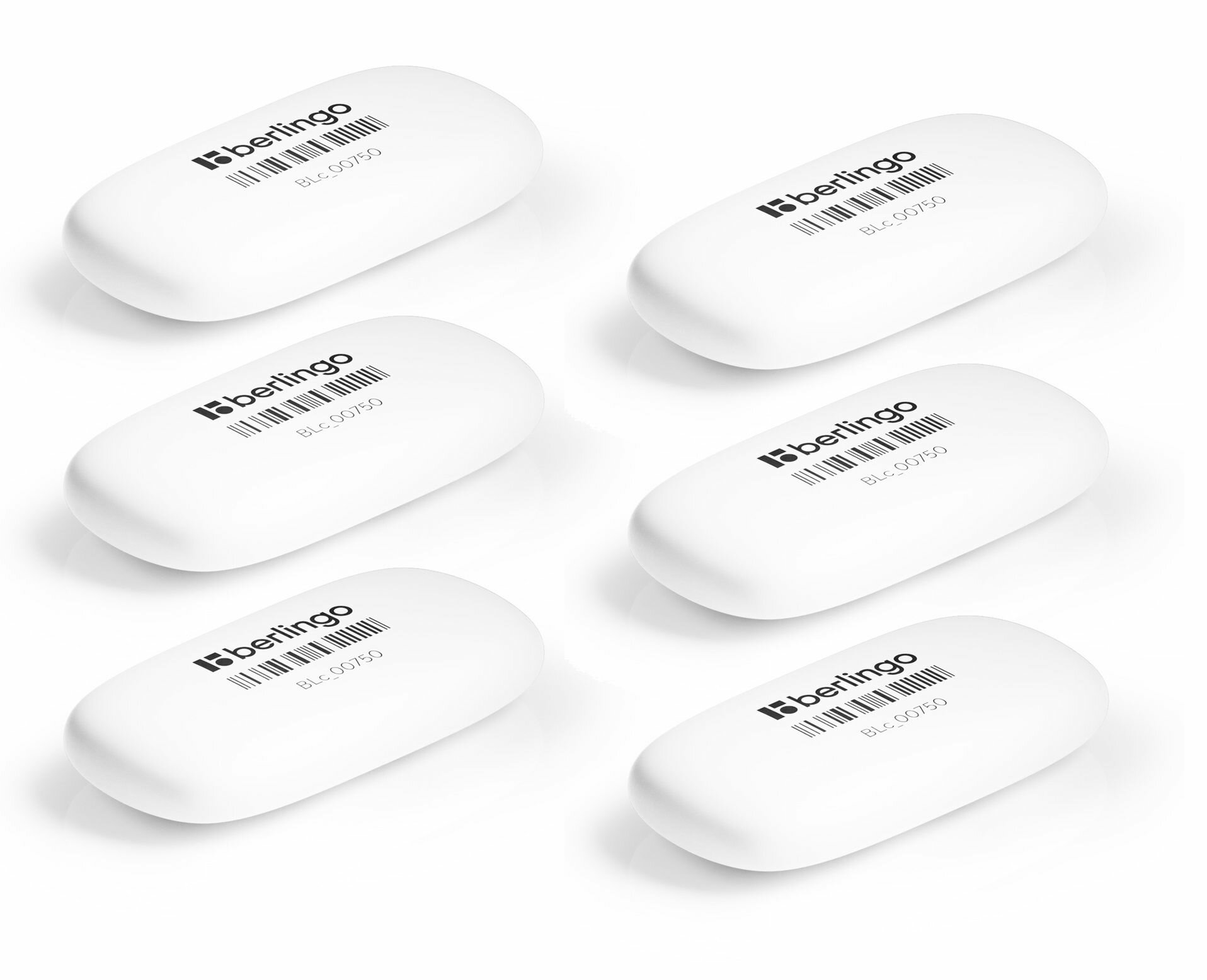 Купить Набор из 6 шт. - Ластик Berlingo "Eraze 750", овальный, термопластичная резина, 57*28*12мм (большой)