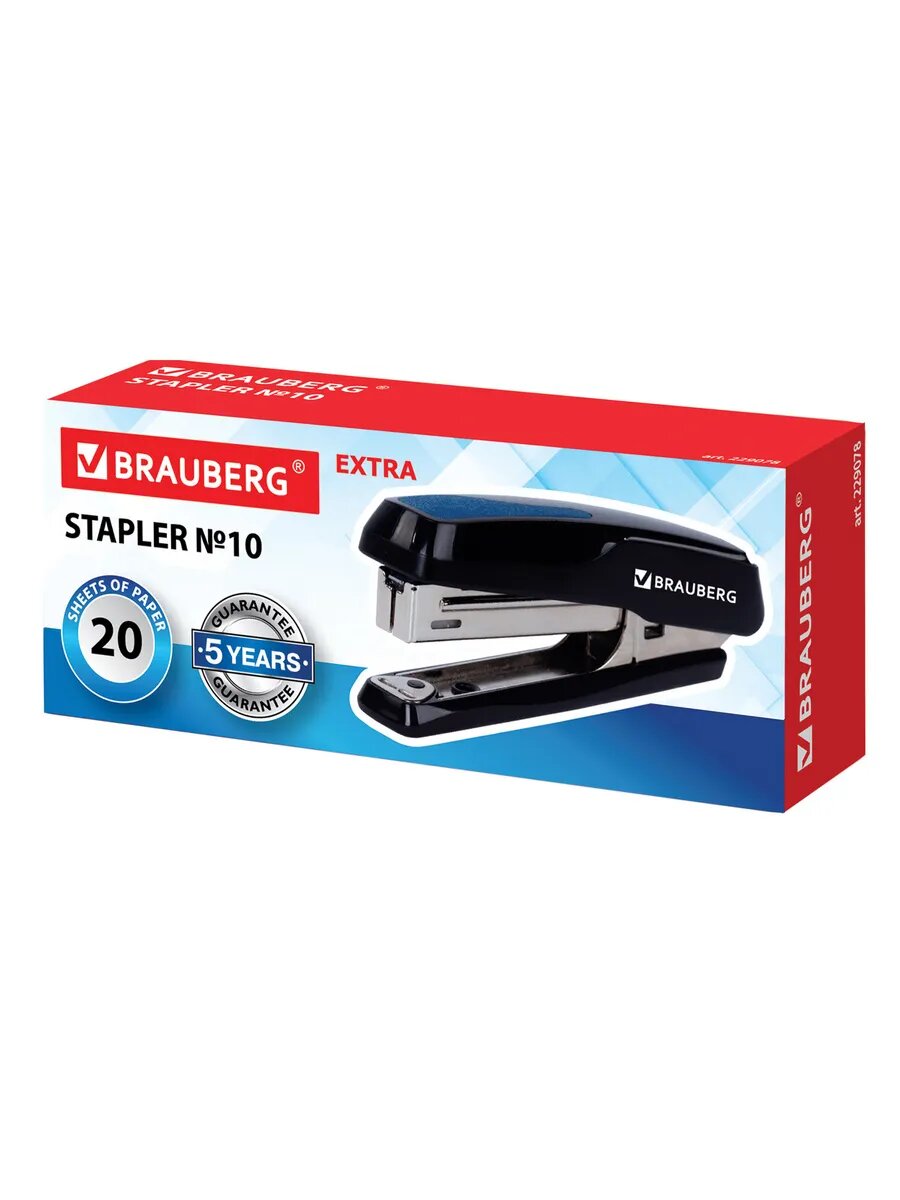 Степлер Brauberg Extra, №10, до 20 листов, антистеплер, черно-синий (229078)